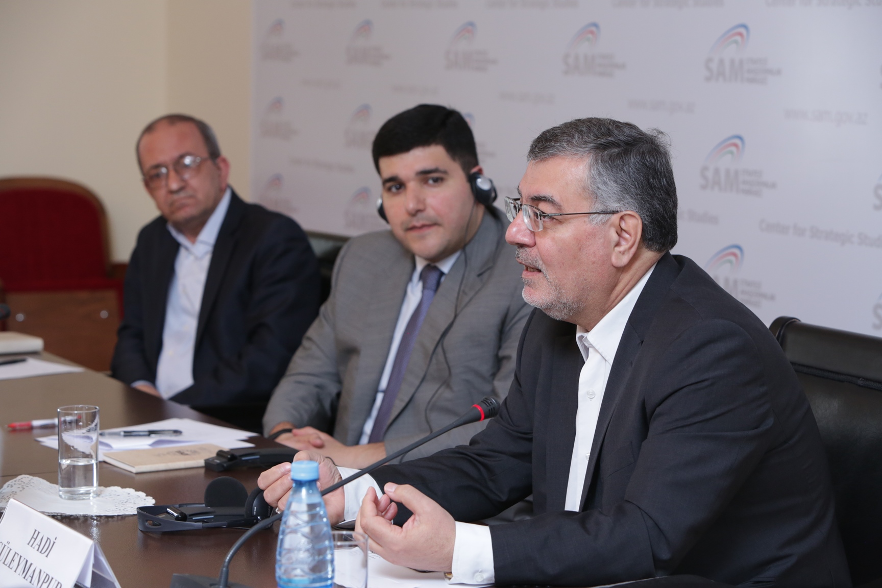 Tədbiri giriş sözü ilə SAM-ın direktoru Fərhad Məmmədov açıb. Qapalı görüşdə İran İslam Respublikası Xarici İşlər Nazirliyinin Beynəlxalq Təhsil və Araşdırma Mərkəzinin direktoru Hadi Süleymanpur “İranın postsanksiya dövründə qlobal və regional (Orta Şərq və Cənubi Qafqaz) məsələlərə yanaşması” və SAM-ın Xarici siyasət məsələlərinin təhlili şöbəsinin baş elmi işçisi Məsiağa Məhəmmədi “Azərbaycan-İran münasibətləri” mövzularında çıxış ediblər.