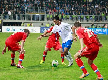 “Avro-2016”nın seçmə mərhələsində sentyabrın 9-da Bolqarıstanla keçiriləcək oyuna hazırlıq xarakteri daşıyan görüşdə millimiz oyuna uğursuz başlayıb. Rusiya komandası birinci hissədən qapımızdan üç cavabsız top keçirib.