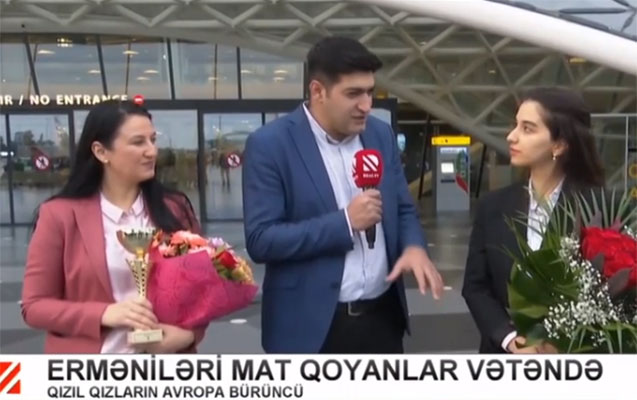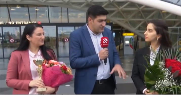 Şahmat üzrə komandalar arasında Avropa çempionatında Ermənistan komandasını məğlub edən qadın şahmatçılarımız Zeynəb Məmmədyarova ilə Günay Məmmədzadə Azərbaycana gəliblər.