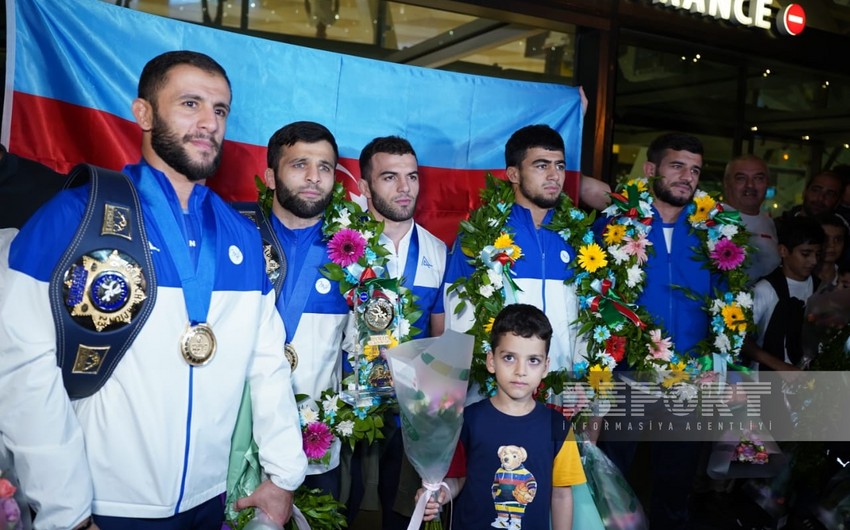 Serbiyanın paytaxtı Belqradda keçirilən dünya çempionatında tarixi uğura imza atan yunan-Roma güləşi üzrə Azərbaycan millisi Vətənə qayıdıb.