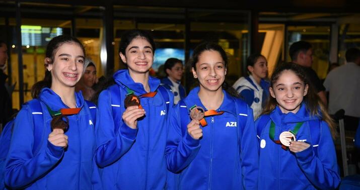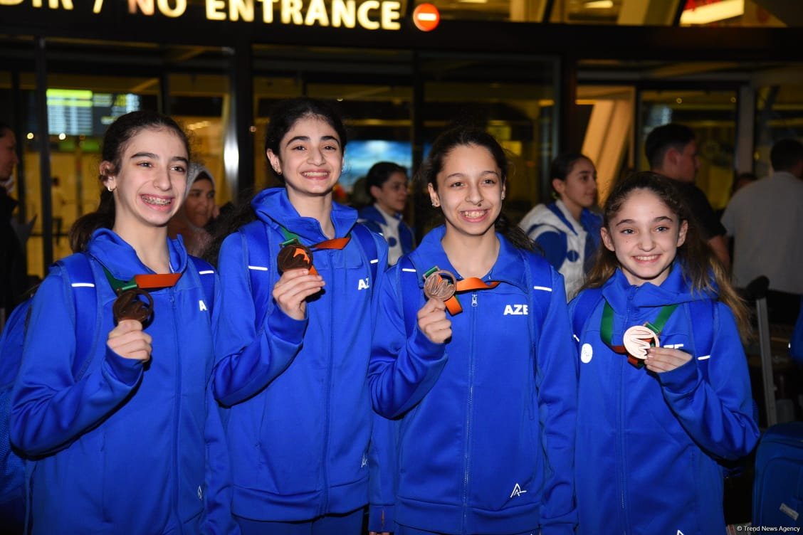 Teleqraf.com xəbər verir ki, onları Heydər Əliyev Beynəlxalq Aeroportunda Azərbaycan Gimnastika Federasiyasının nümayəndələri, media mənsubları, azarkeşlər və idmançıların yaxınları qarşılayıblar.