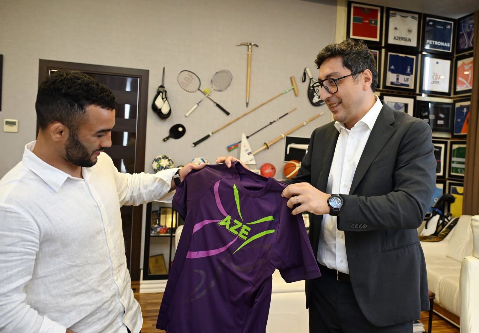 Nazirliyin mətbuat xidmətindən Teleqraf-a verilən məlumata görə, Tokio və Parisdə Yay Olimpiya Oyunlarının gümüş medallarını qazanmış güləşçi, hazırda Ukraynanı təmsil edən Pərviz Nəsibov görüş zamanı gələcək karyerası barədə məlumat verib.
