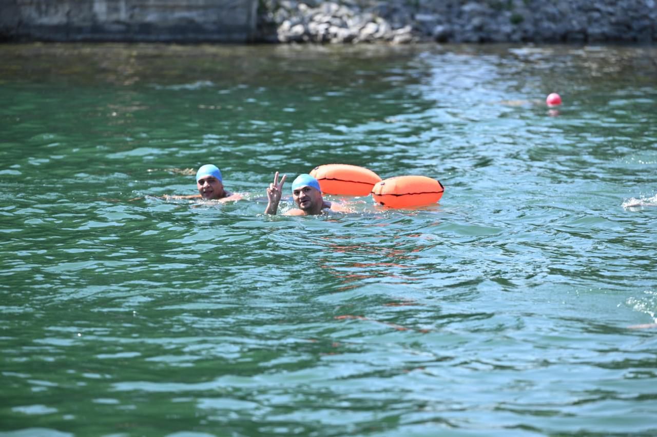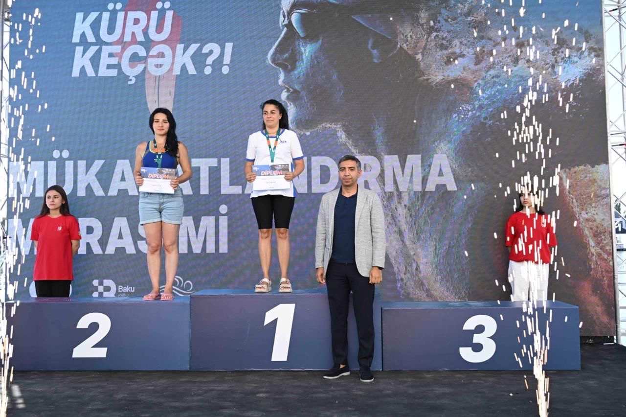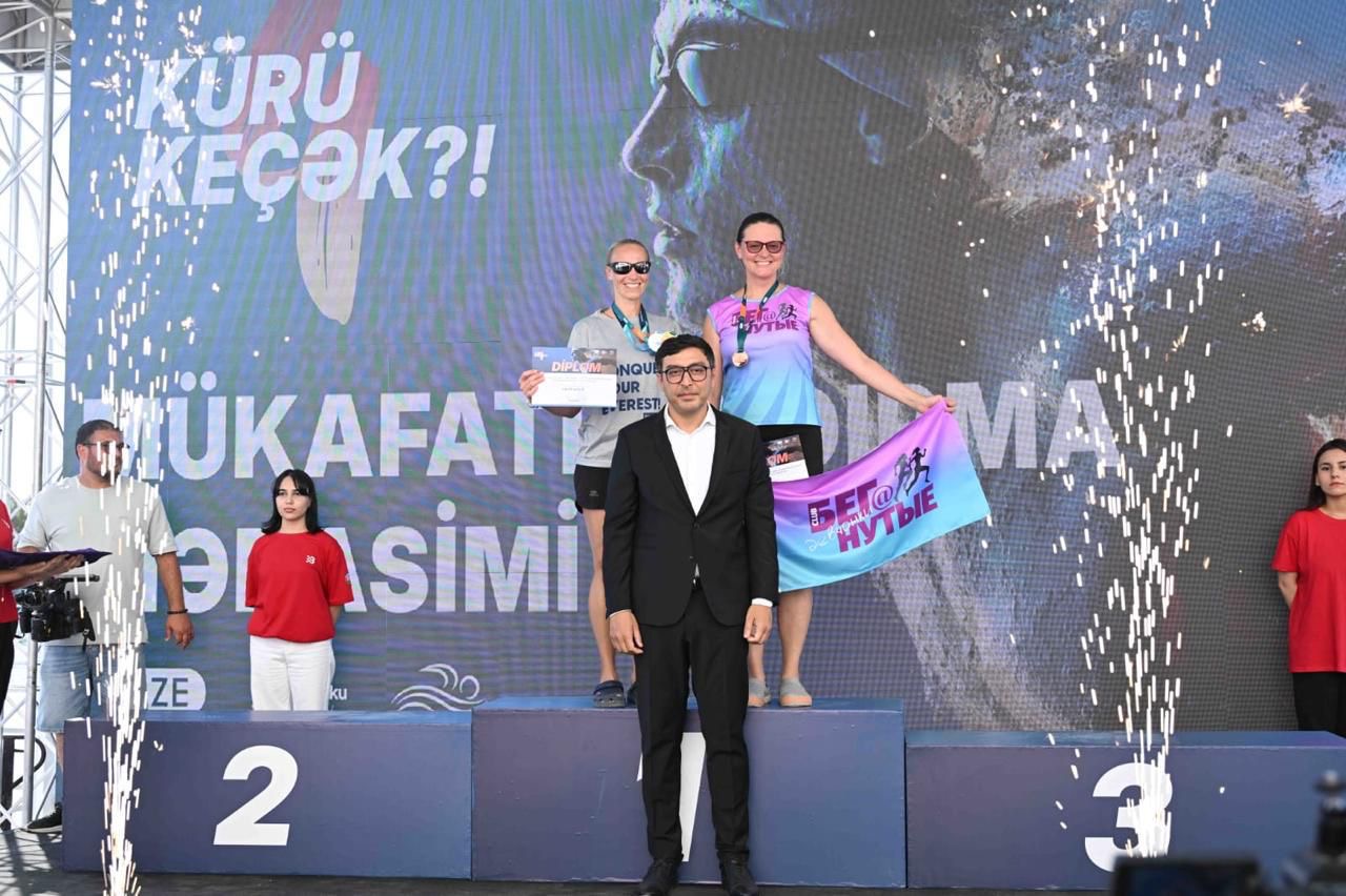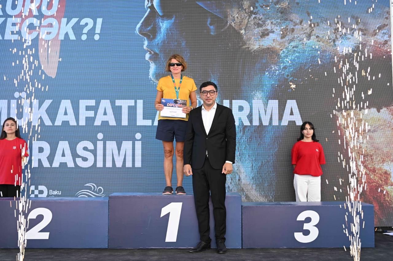 Gənclər və idman naziri Fərid Qayıbov və Azərbaycan Üzgüçülük Federasiyasının prezidenti Zaur Əliyev də startdan finişədək üzüblər.
