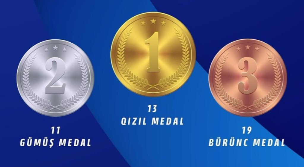Medallardan 13-ü qızıl, 11-i gümüş, 19-u bürüncdür.