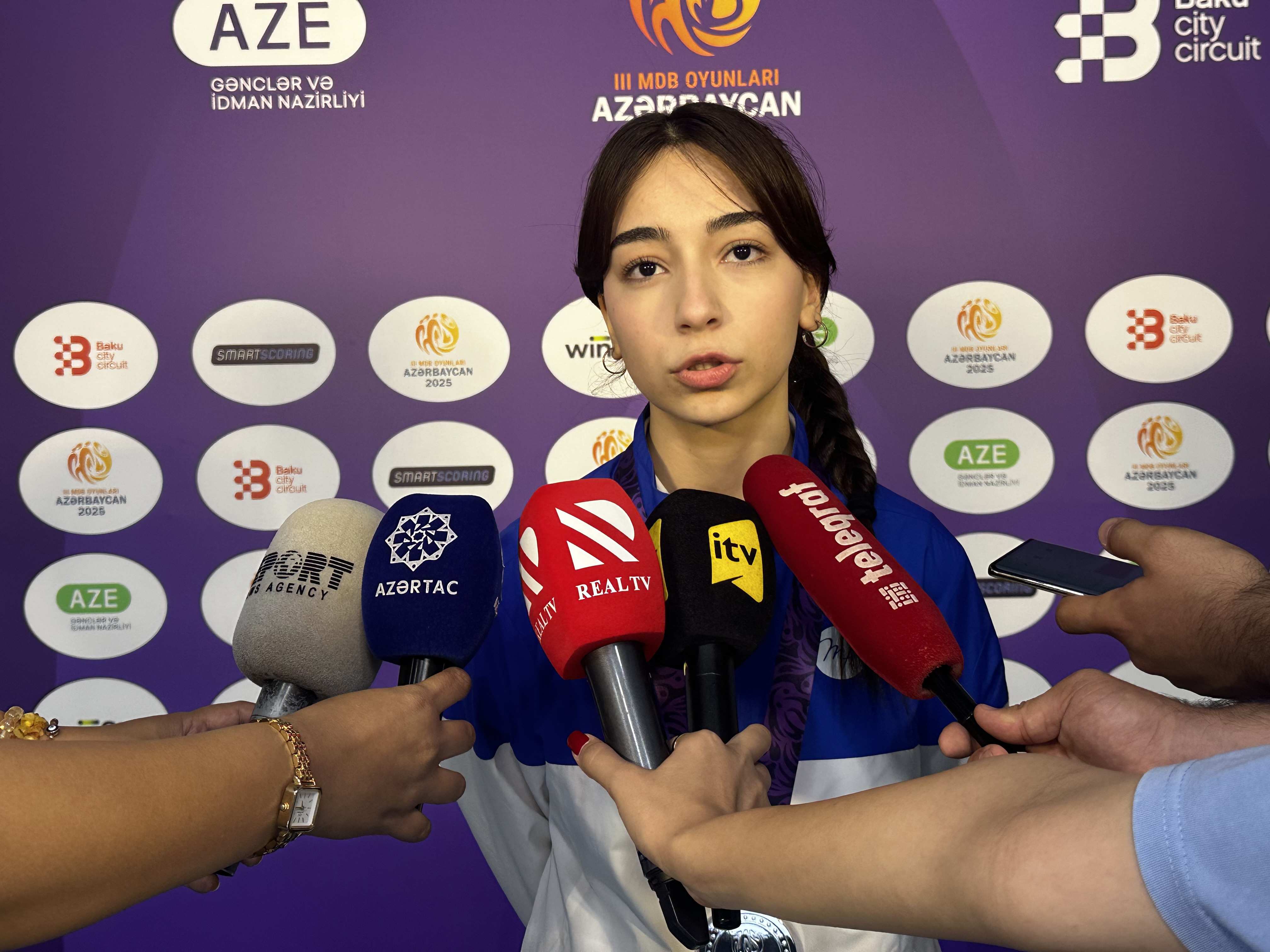 Teleqraf-ın Gəncəyə ezam olunmuş əməkdaşı xəbər verir ki, bunu qılıncoynatmanın sablya növü üzrə qızlardan ibarət Azərbaycan milli komandasının üzvü Fərəh Abasova III MDB Oyunlarında gümüş medal qazanmasını şərh edərkən deyib: