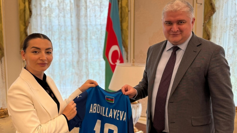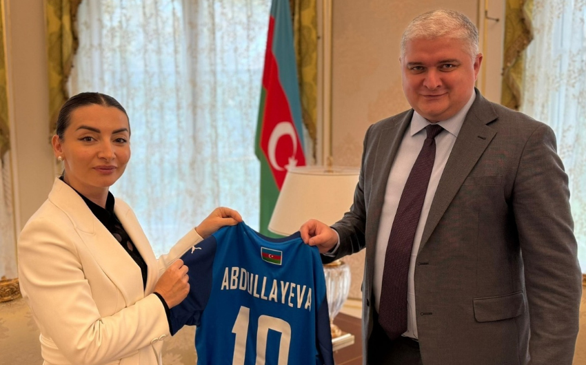 Görüş zamanı səfirə Azərbaycan milli komandasının forması hədiyyə olunub.
