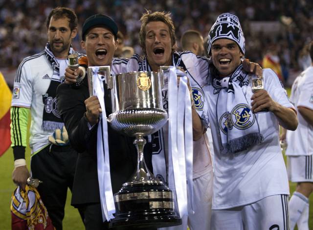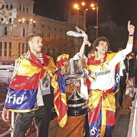 İspaniya kubokunun finalında “Barselona”ya qalib gələn “Real”ın futbolçuları, məşqçilər korpusu qələbəni möhtəşəm atəşfəşanlıqla qeyd ediblər.