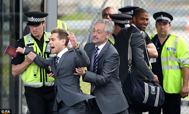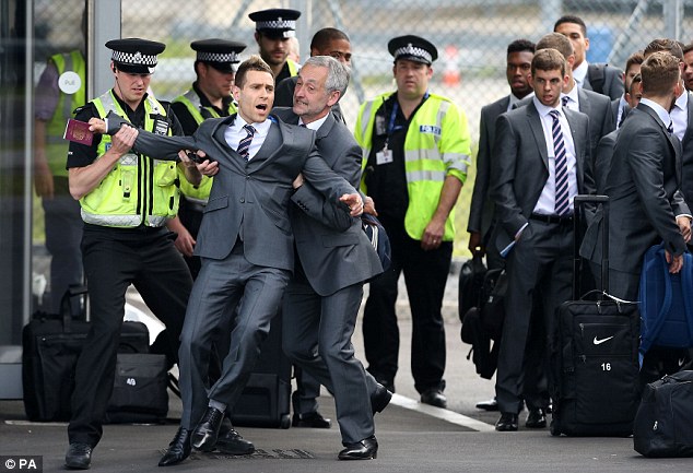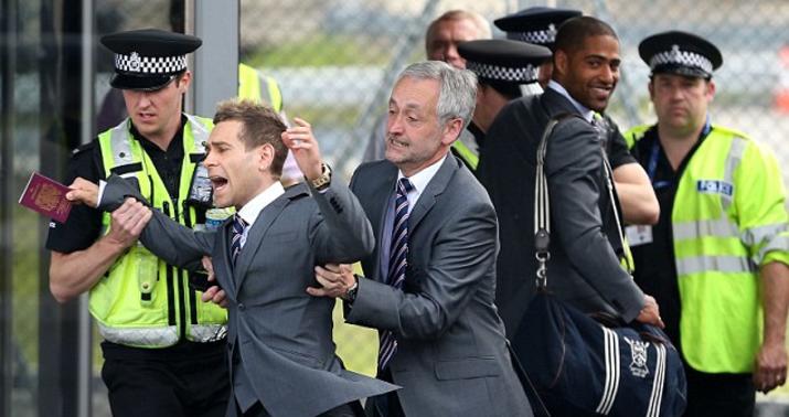 Teleqraf.com xəbər verir ki, millinin oyunçularının geyindiyi kostyumda olan aktyor pasportunu göstərərək təyyarəyə keçmək istəyib. Lakin bunu Stiven Cerard görüb. Polislər işə qarışıb.