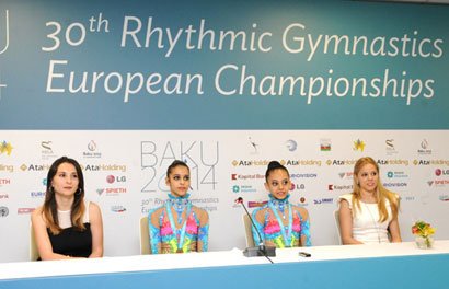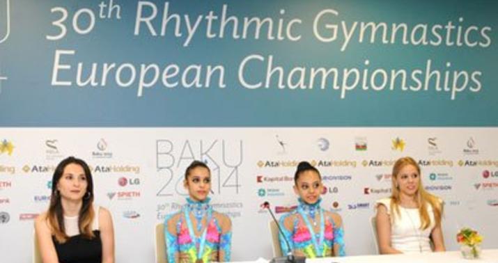 Azərbaycan gimnastları mətbuat konfransında sıxıntılı görünsələr də, onlara kömək edən talismanlarını nümayiş etdiriblər. Məşqçilər gimnastların bu durumunu həyacanın nəticəsi kimi qiymətləndiriblər.
