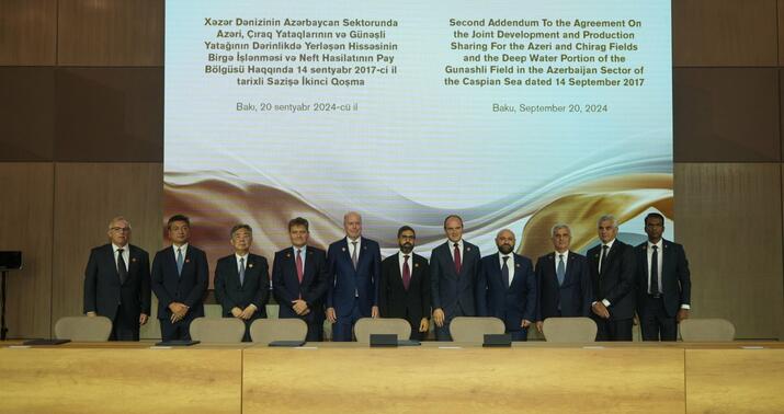 SOCAR (Azərbaycan Respublikası Dövlət Neft Şirkəti) bp, MOL, INPEX, Equinor, ExxonMobil, TPAO, ITOCHU və ONGC Videsh şirkətləri ilə birlikdə bu gün Xəzər dənizinin Azərbaycan sektorunda Azəri və Çıraq yataqları və Günəşli yatağının dərinsulu hissəsi (AÇG) üzrə mövcud hasilatın pay bölgüsü sazişinə (HPBS) yeni bir əlavənin imzalandığını elan edib.