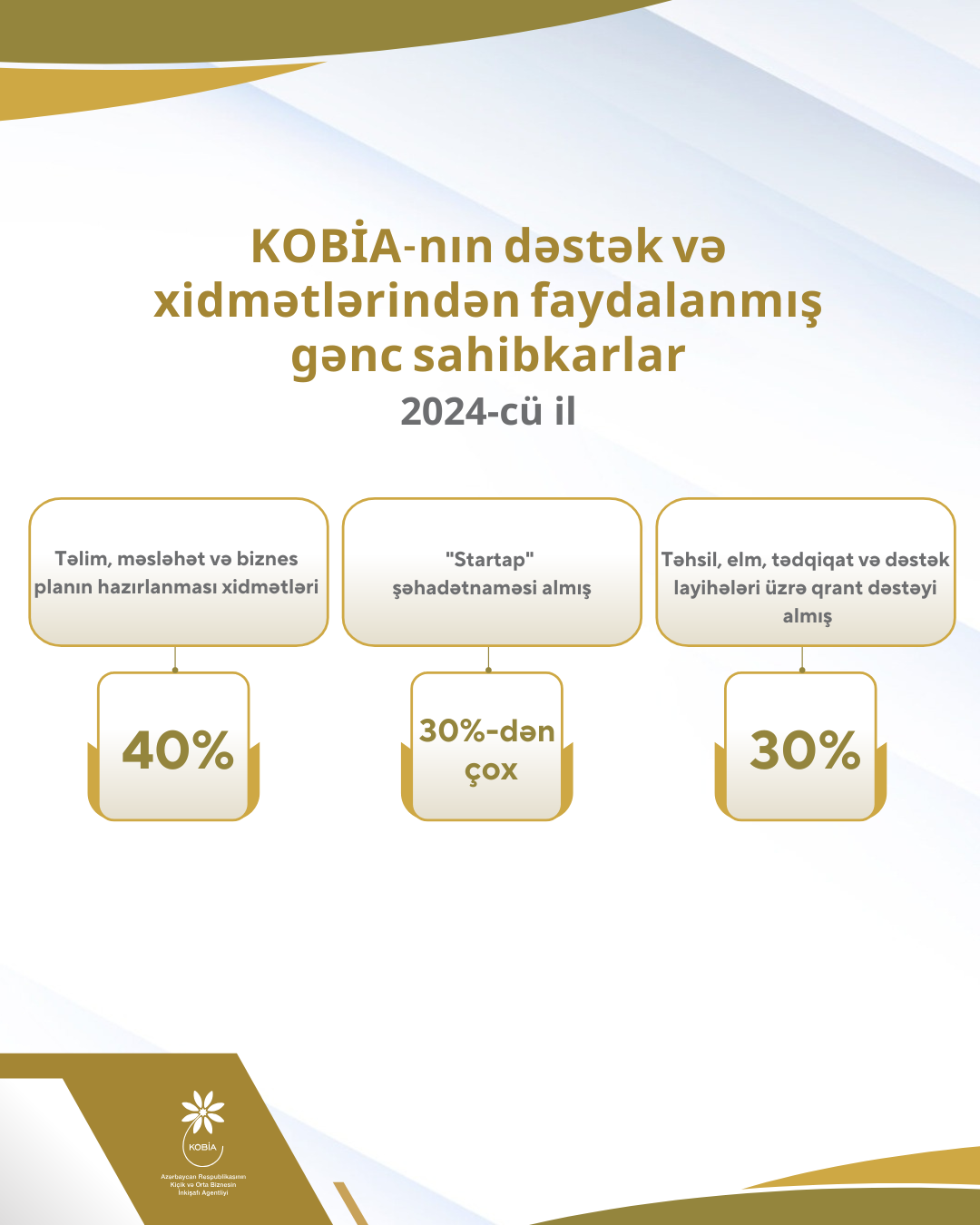 Kiçik və Orta Biznesin İnkişafı Agentliyinin (KOBİA) 2024-cü ildə biznes planın hazırlanması xidmətlərindən faydalananların 40%-ni məhz gənclər təşkil edib.
