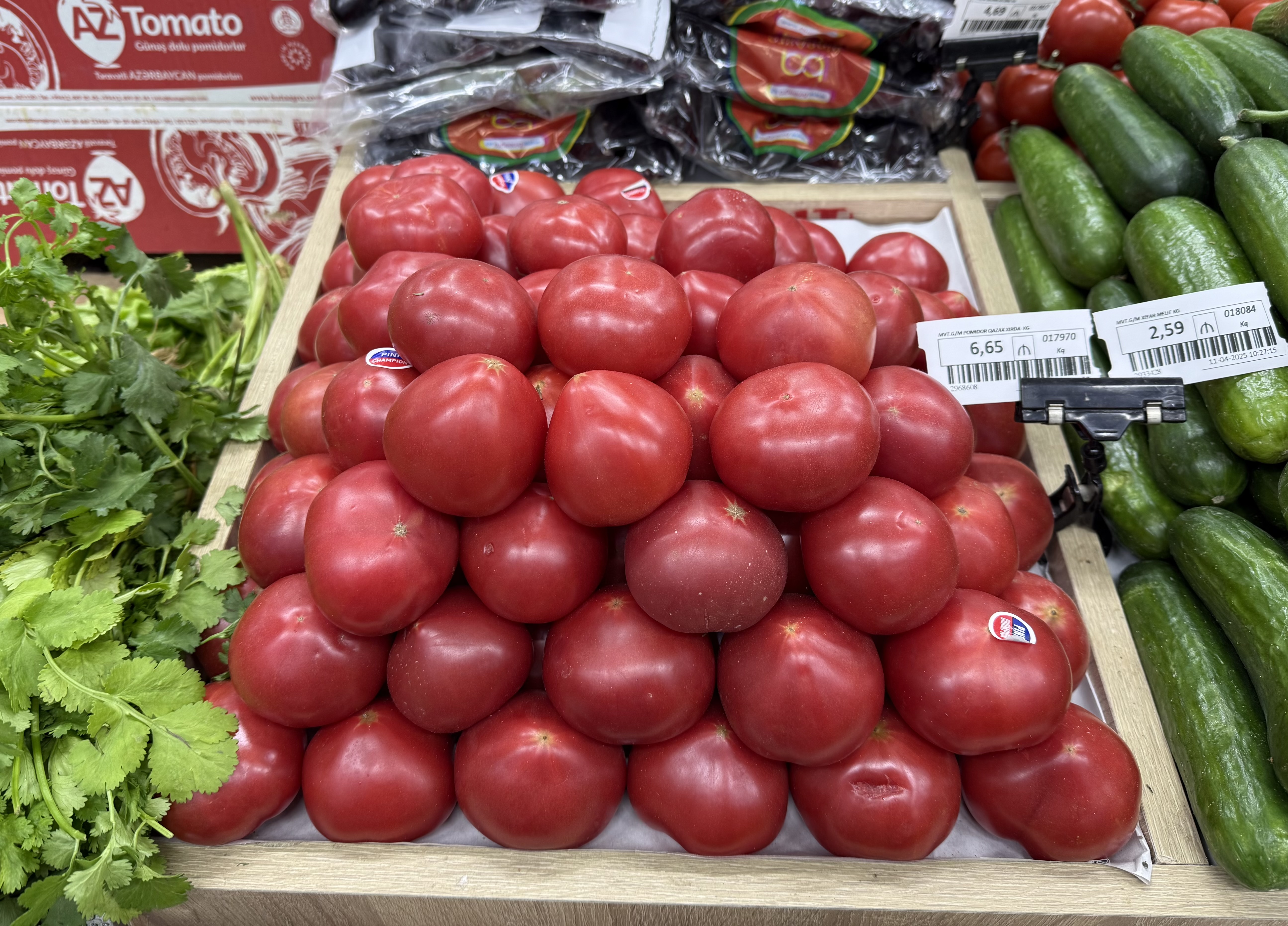 Teleqraf xəbər verir ki, marketlərdə pomidorun bir kiloqramı 5,79–6,65 manat arasında dəyişir. Bu da bir il əvvəllə müqayisədə 2 manat yüksəkdir.