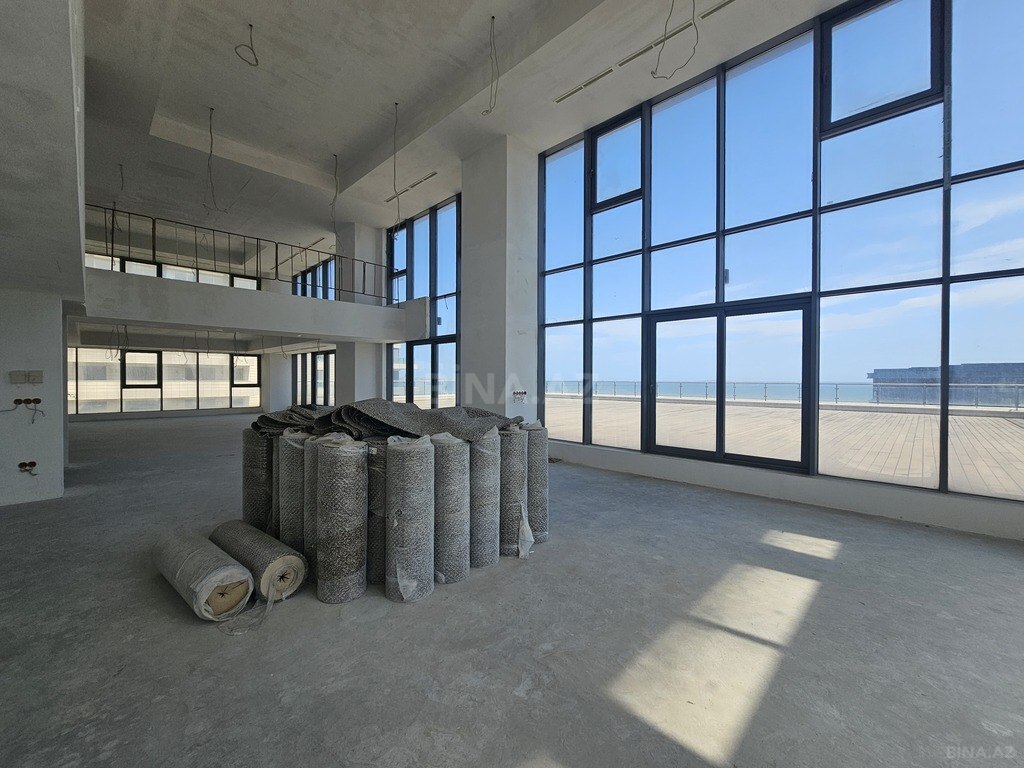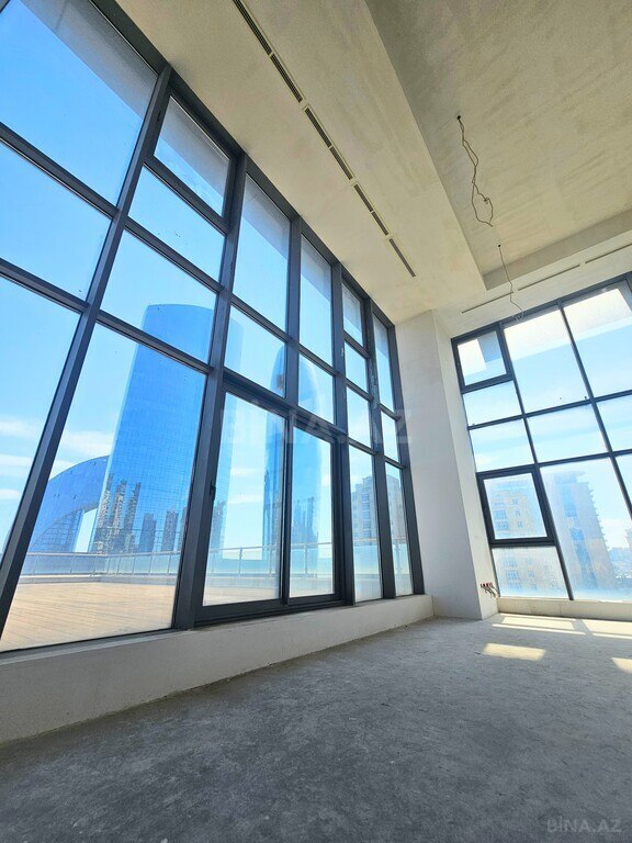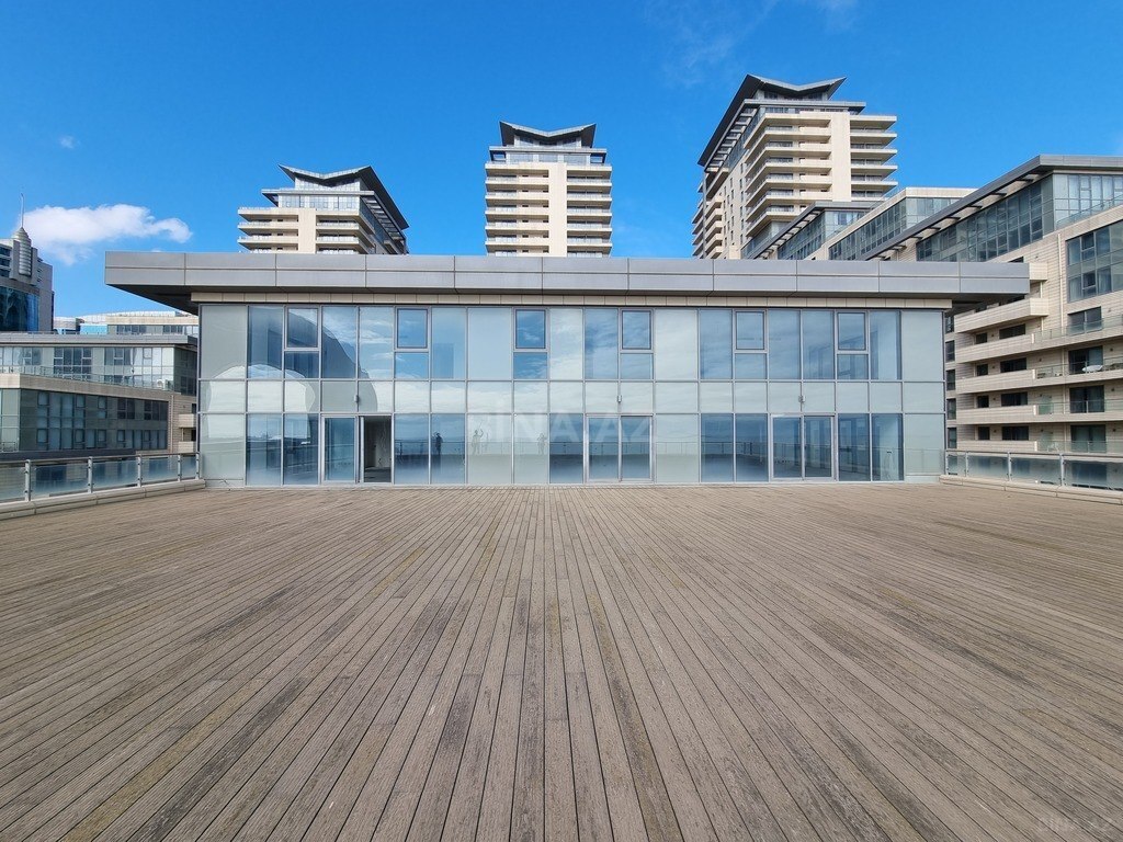 Mənzil 33 mərtəbəli binanın 11-ci mərtəbəsində yerləşir. "White box" formatında təklif olunur. Bu isə alıcılara öz zövqlərinə uyğun interyer dizaynı yaratmaq imkanı verir. Mənzilin ən böyük üstünlüklərindən biri isə 350 m²-lik geniş terrasdır. Buradan həm şəhərə, həm də Xəzər dənizinə möhtəşəm mənzərə açılır.