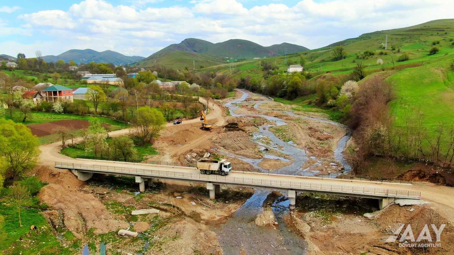 Görülən işlərə paralel olaraq, yolboyu suların ötürülməsi məqsədilə zəruri yerlərdə düzbucaqlı və müxtəlif diametrlərə malik suötürücülərin tikintisi yerinə yetirilib. Yolboyu layihədə nəzərdə tutulan 4 körpünün inşası üzrə işlər artıq icra olunub. Hazırda körpülərin yanaşma yollarının tikintisi son mərhələdə olmaqla davam etdirilir.