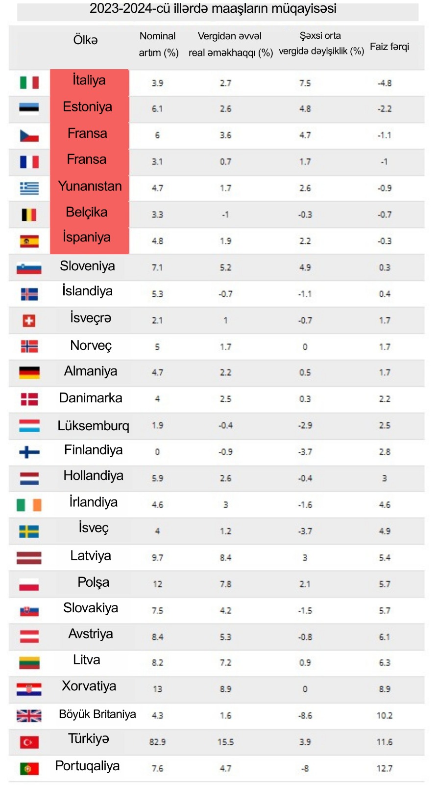 Estoniya və Çexiyada da vergi dərəcələri 4.5%-dən çox artıb, real əməkhaqqı artımı bu artımla ayaqlaşmadığı üçün 2024-cü ildə vergi ödənişlərindən sonra sərəncamda qalan gəlirlər azalıb.