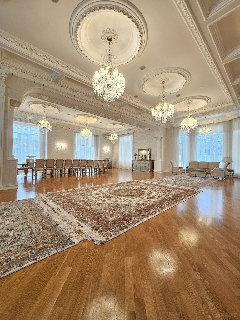 Villa qismən əşyalı (dünyaca məşhur brendlərin mebelləri və avadanlıqları ilə təchiz edilib) şəkildə satılır. Tikili 4 mərtəbəlidir və 14 otaqdan ibarətdir. Yarımzirzəmi mərtəbəsində geniş zal, iri mətbəx, anbar, sanitar qovşaqlar və köməkçi otaq yerləşir. Birinci mərtəbədə 220 kv.m-lik zal, mətbəx, yataq otağı, qarderob otağı, namaz otağı, antresol və qapalı hovuz otağı mövcuddur. İkinci mərtəbədə hər biri şəxsi sanitar qovşağa malik 5 yataq otağı, əlavə qarderob otaqları və böyük zal yer alır. Mansard mərtəbəsi isə açıq planlı sahə, əlavə otaqlar və 230 kv.m-lik geniş terrasdan ibarətdir.