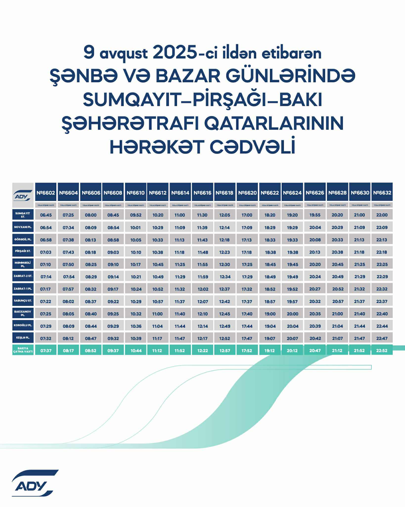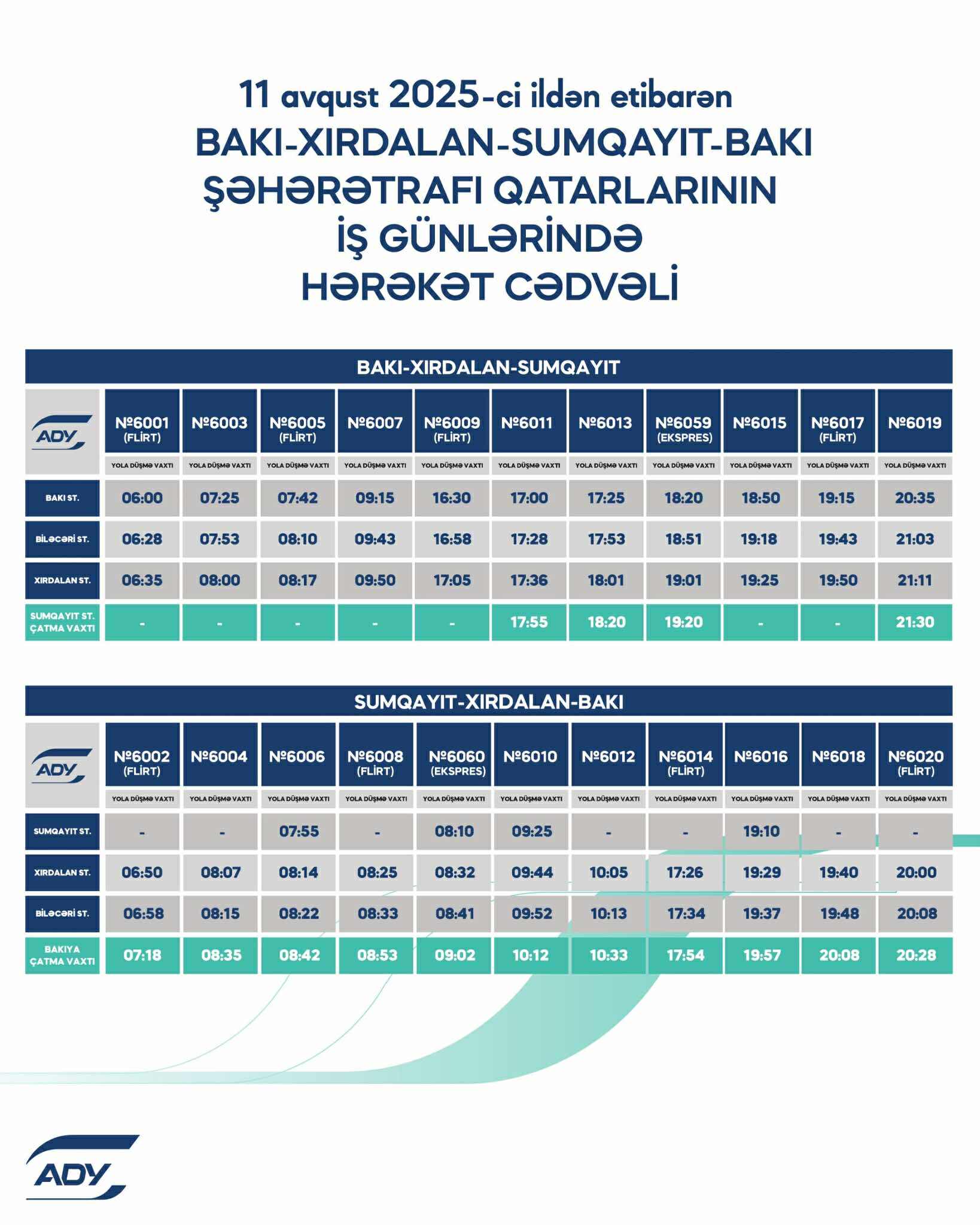 Bakı–Keşlə sahəsində aparılan təmir işləri ilə əlaqədar olaraq, 11 avqustdan etibarən Abşeron dairəvi dəmir yolu marşrutu üzrə sərnişin qatarları yenilənmiş hərəkət cədvəli ilə xidmət göstərəcək.