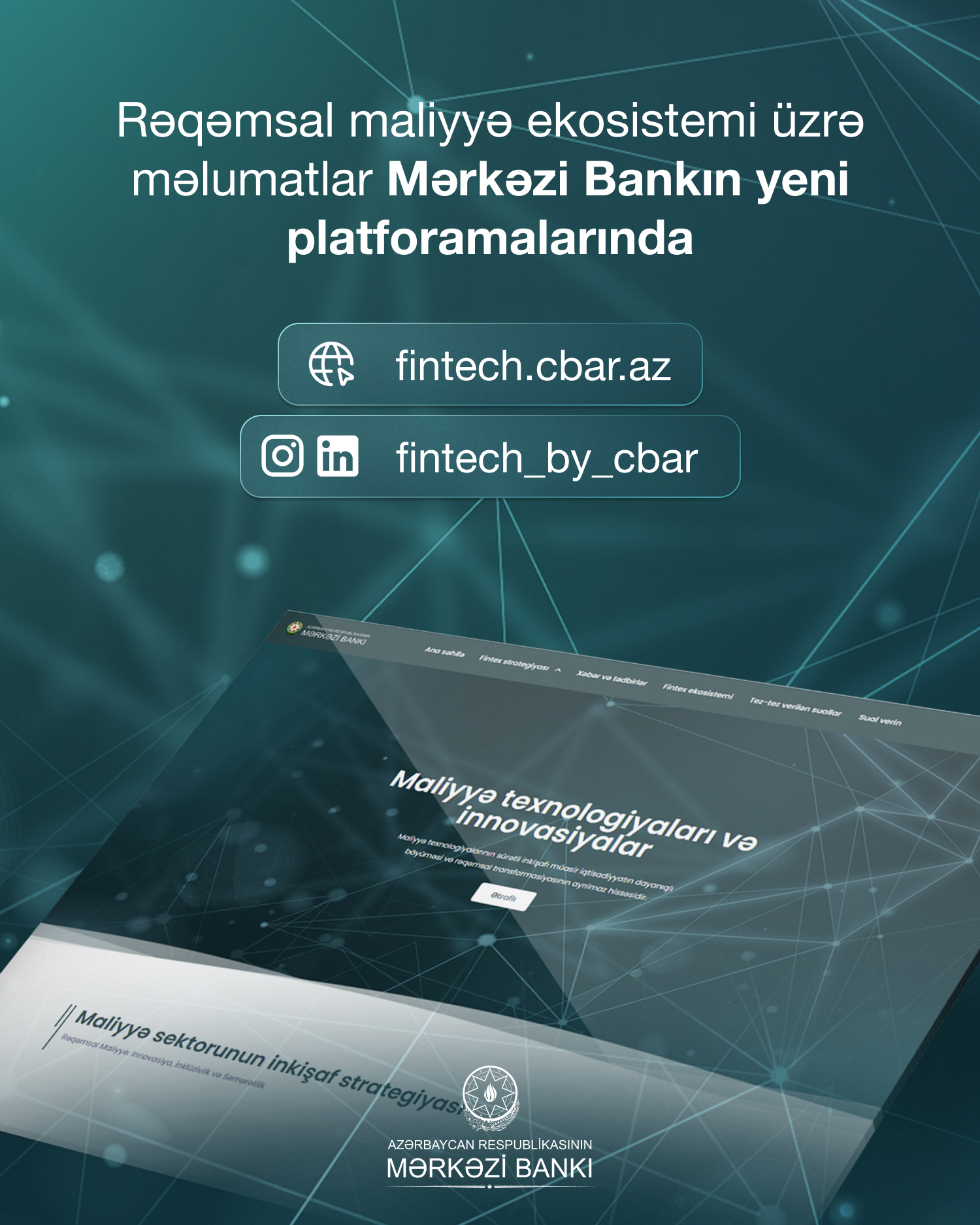 Mərkəzi Bank fintech.cbar.az adlı informasiya platformasını və “Fintech_by_cbar” adlı sosial media səhifələri (Instagram və LinkedIn) ictimaiyyətin istifadəsinə verilib.