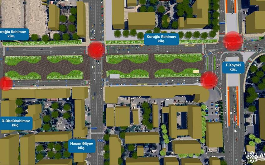 Piyadaların təhlükəsizliyi üçün Koroğlu Rəhimov və Fətəli xan Xoyski küçələrinin kəsişməsində işıqforla tənzimlənən piyada keçidləri təşkil olunacaq.