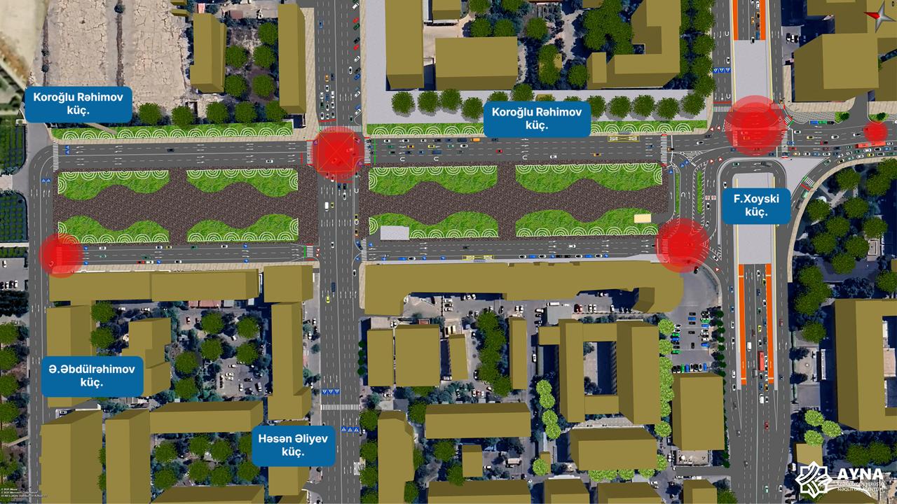 Eyni zamanda, Həsən Əliyev küçəsindən gələrək Koroğlu Rəhimov küçəsinə daxil olmaq istəyənlər parkın yanından – əsas küçəyə paralel yerləşən hissədən keçərək sola hərəkətlərini davam etdirəcəklər.