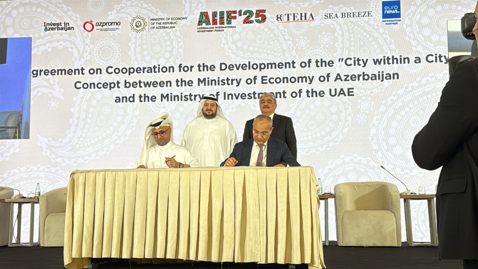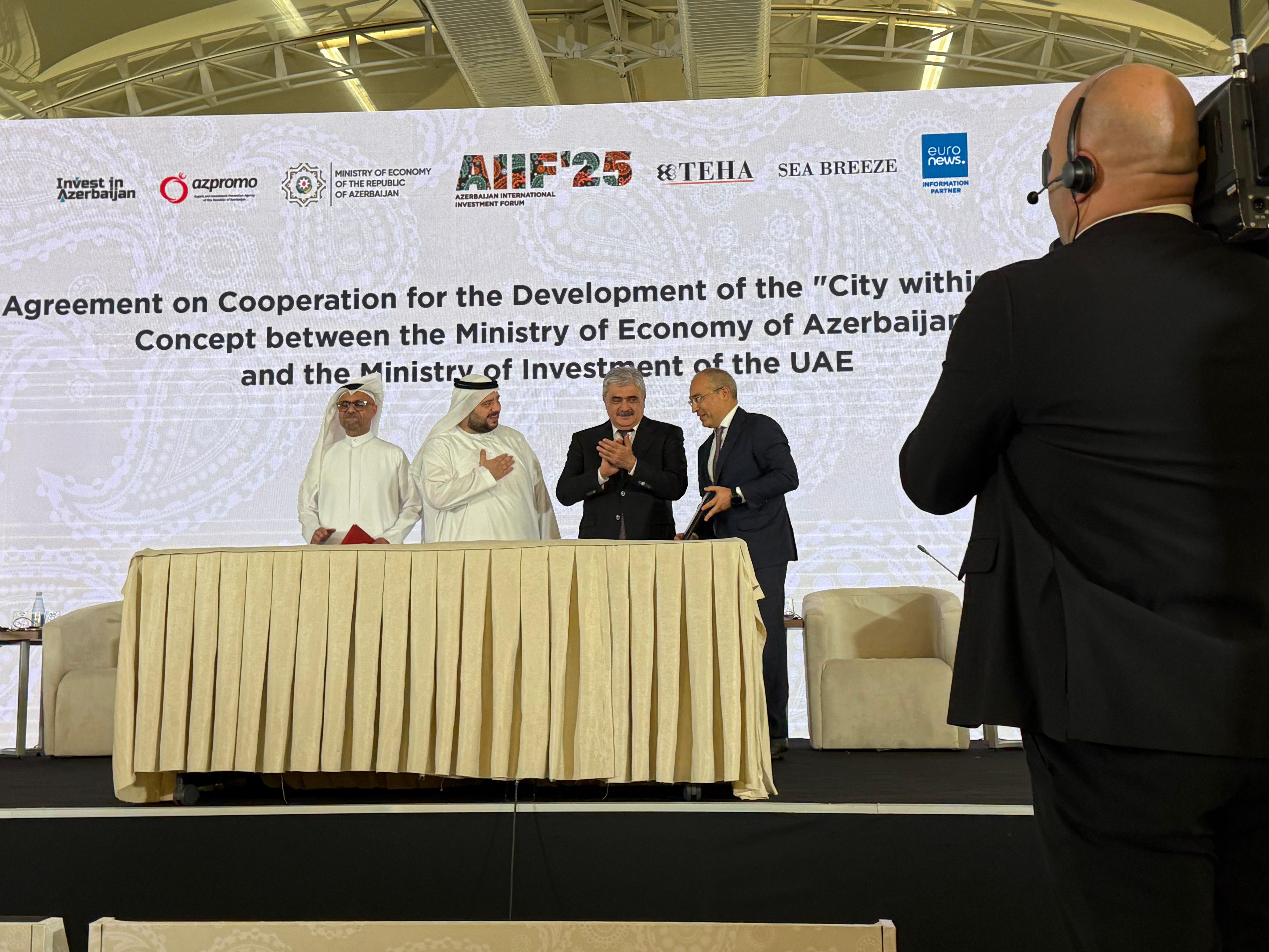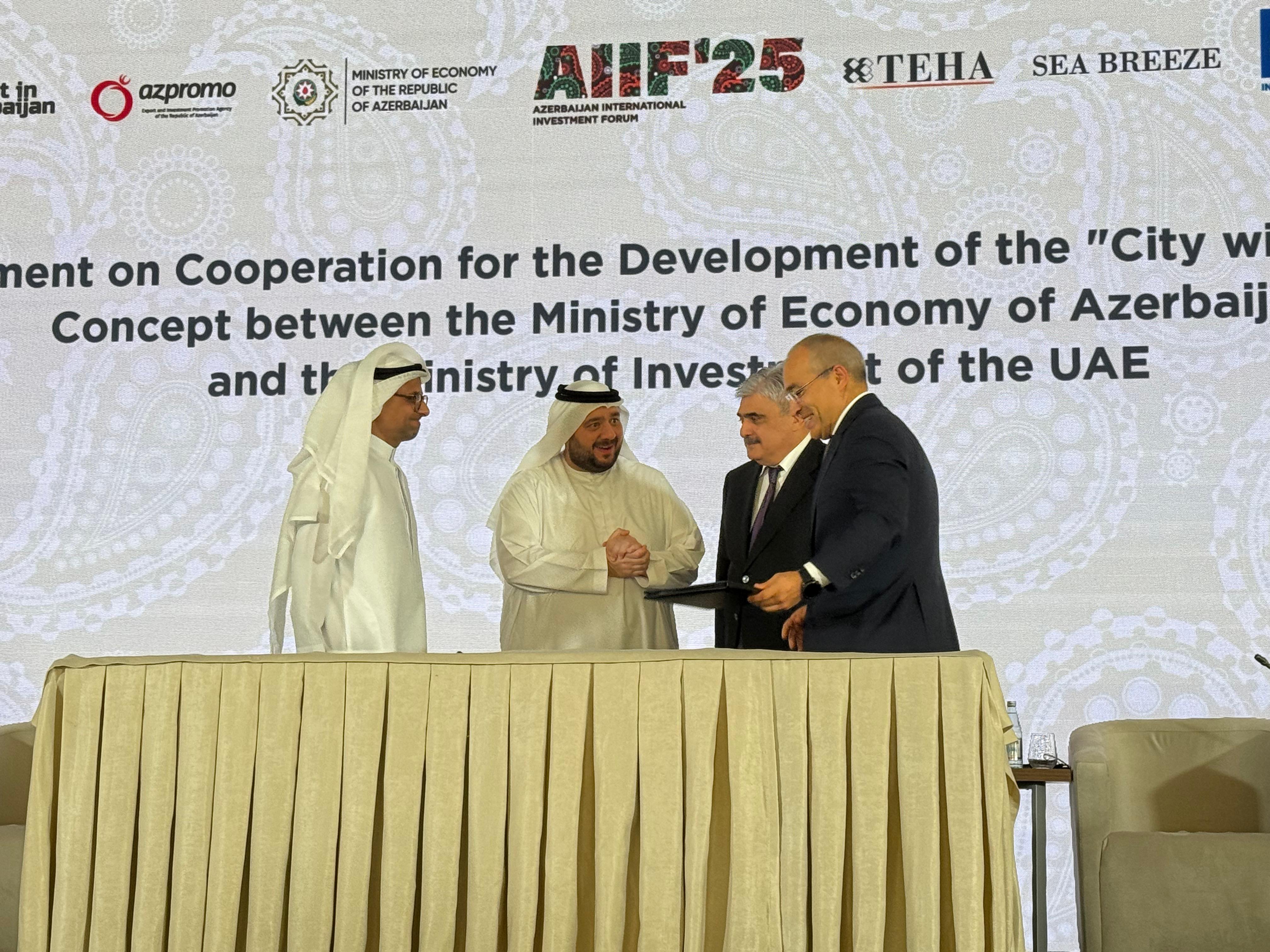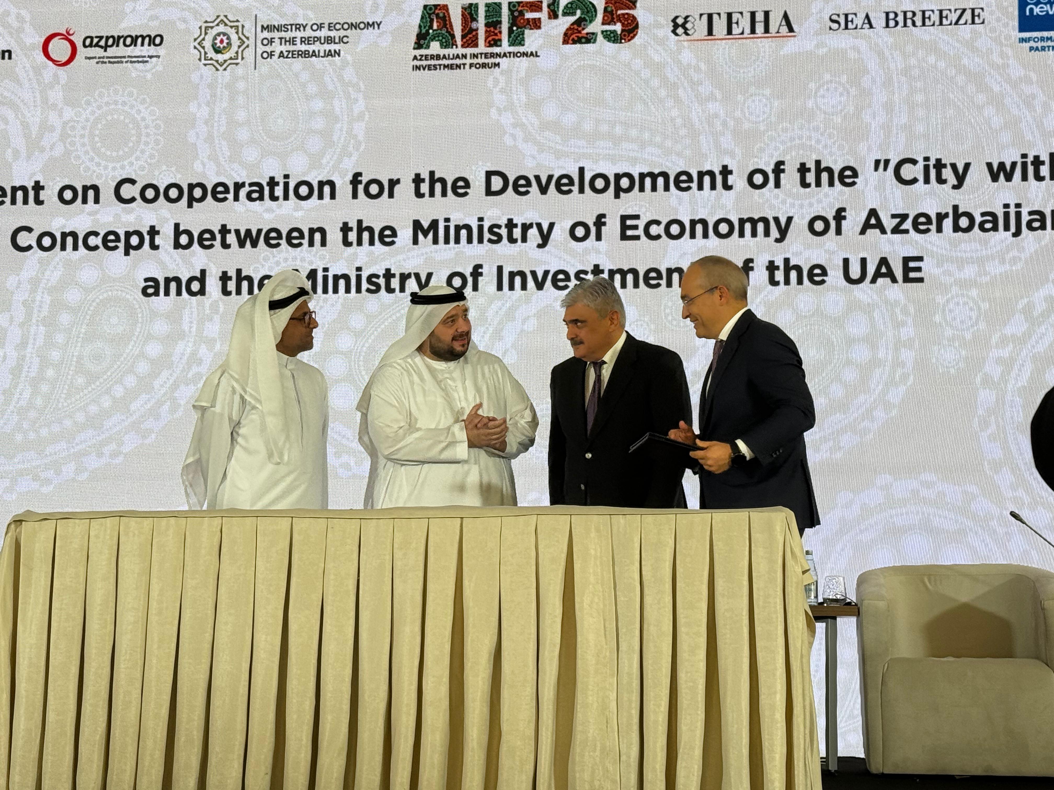 Teleqraf xəbər verir ki, Bakıda keçirilən 1-ci Azərbaycan Beynəlxalq İnvestisiya Forumu çərçivəsində İqtisadiyyat naziri Mikayıl Cabbarov və “Modon”un sədri Cassem Mohammed Bu Ataba Al Zaabi “Şəhər içində şəhər” konsepsiyasının inkişafı üzrə əməkdaşlıq haqqında Sazişi imzalayıblar. Sazişin imzalanmasına baş nazirin müavini Samir Şərifov və BƏƏ-nin investisiya naziri Mohamed Hassan Alsuwaidi şahidlik ediblər.