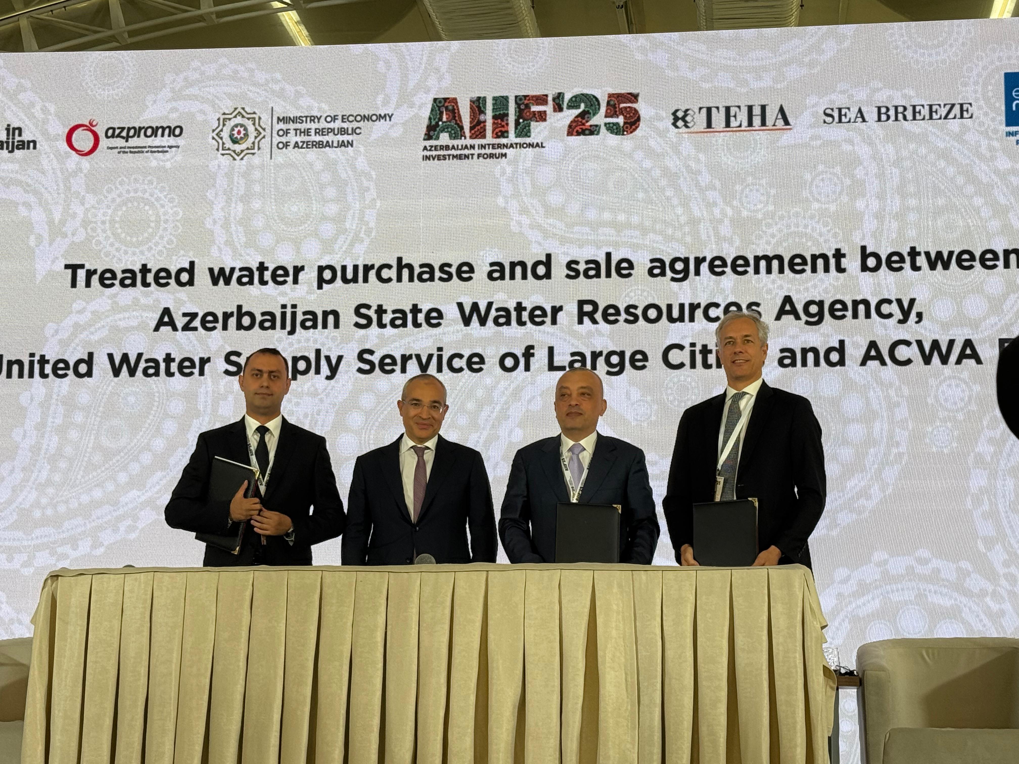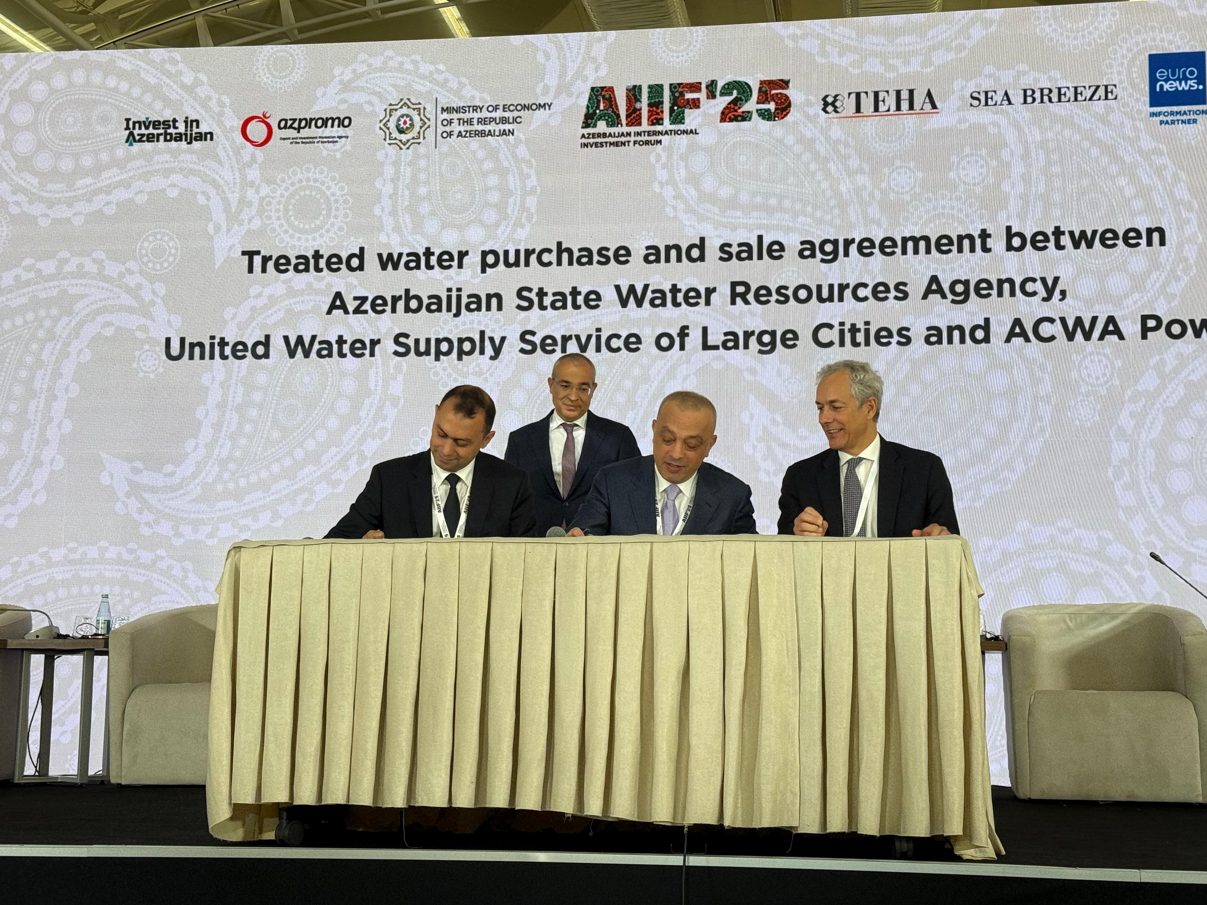 Bununla yanaşı, emal olunmuş suyun alınması haqqında Saziş imzalanıb. Sazişə Dövlət Su Ehtiyatları Agentliyinin sədri Zaur Mikayılov, “Böyük Şəhərlərin Birləşmiş Su Təchizatı Xidməti” publik hüquqi şəxsin İdarə Heyətinin sədri Tahir Xəlilov və “ACWA Power” şirkətinin baş icraçı direktoru Marko Arçelli imza atıblar.