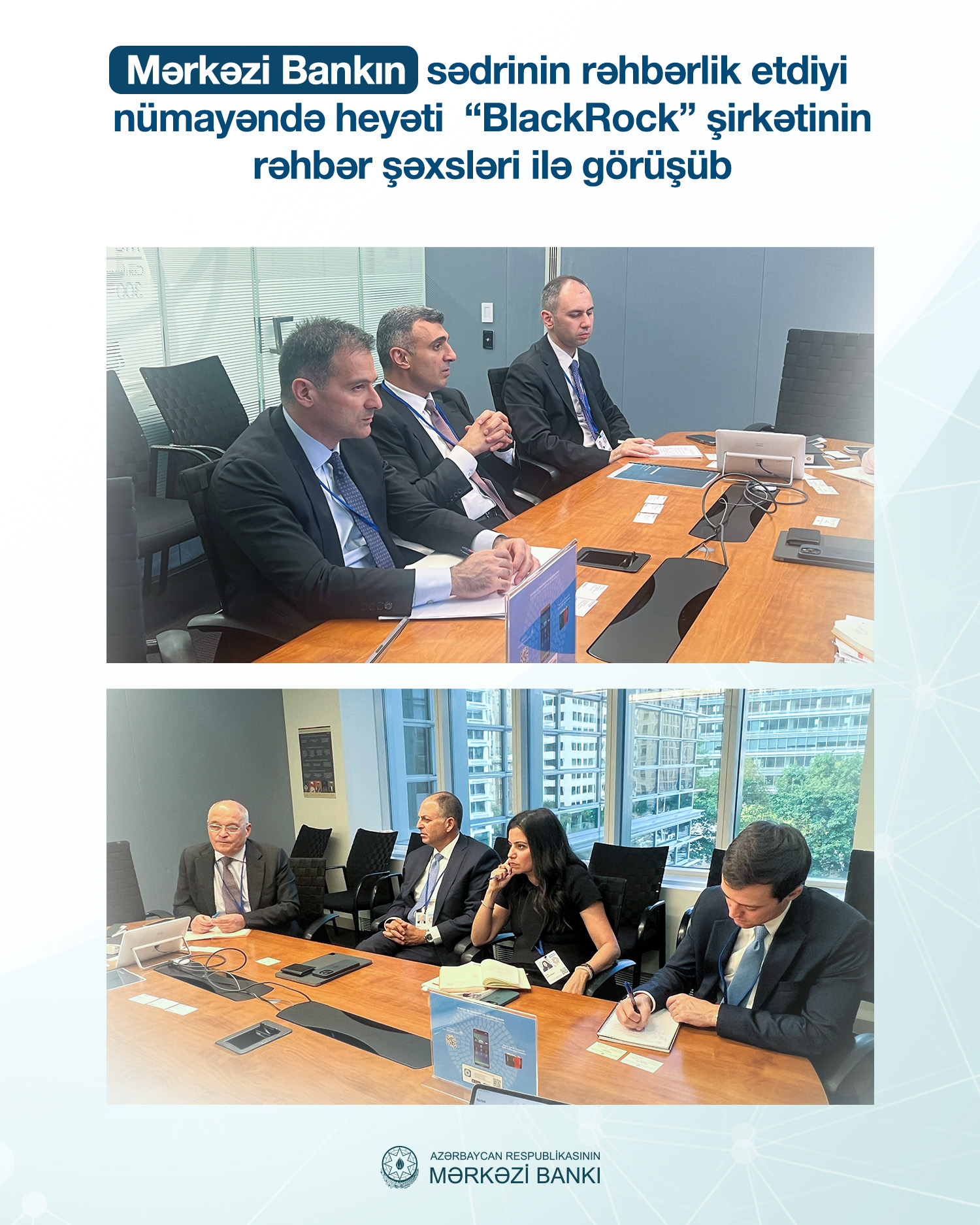 Mərkəzi Bankın sədri Taleh Kazımovun rəhbərlik etdiyi nümayəndə heyəti Vaşinqtona işgüzar səfər çərçivəsində dünyanın ən iri investisiya şirkətlərindən olan “BlackRock”un baş idarəçi direktoru və Qlobal Tərəfdaşlar Ofisinin həmsədri Coud Abdel Macid ilə görüş keçirib.