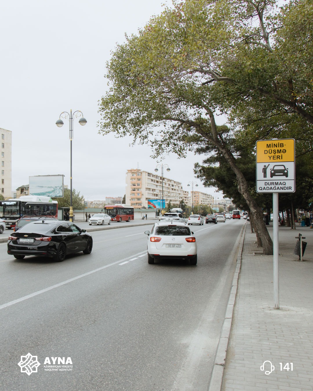 Nizami rayonunun Qara Qarayev prospektinin üç ünvanında – “8-ci kilometr bazarı”nın qarşısında, “Neftçilər” və “Xalqlar dostluğu” metrostansiyalarının çıxışında, eləcə də Nəsimi rayonunun Füzuli küçəsindəki "Azərdövlətlayihə" Dövlət Baş Layihə İnstitutunun qarşısında minib-düşmə yeri təşkil edilib və müvafiq lövhə yerləşdirilib.