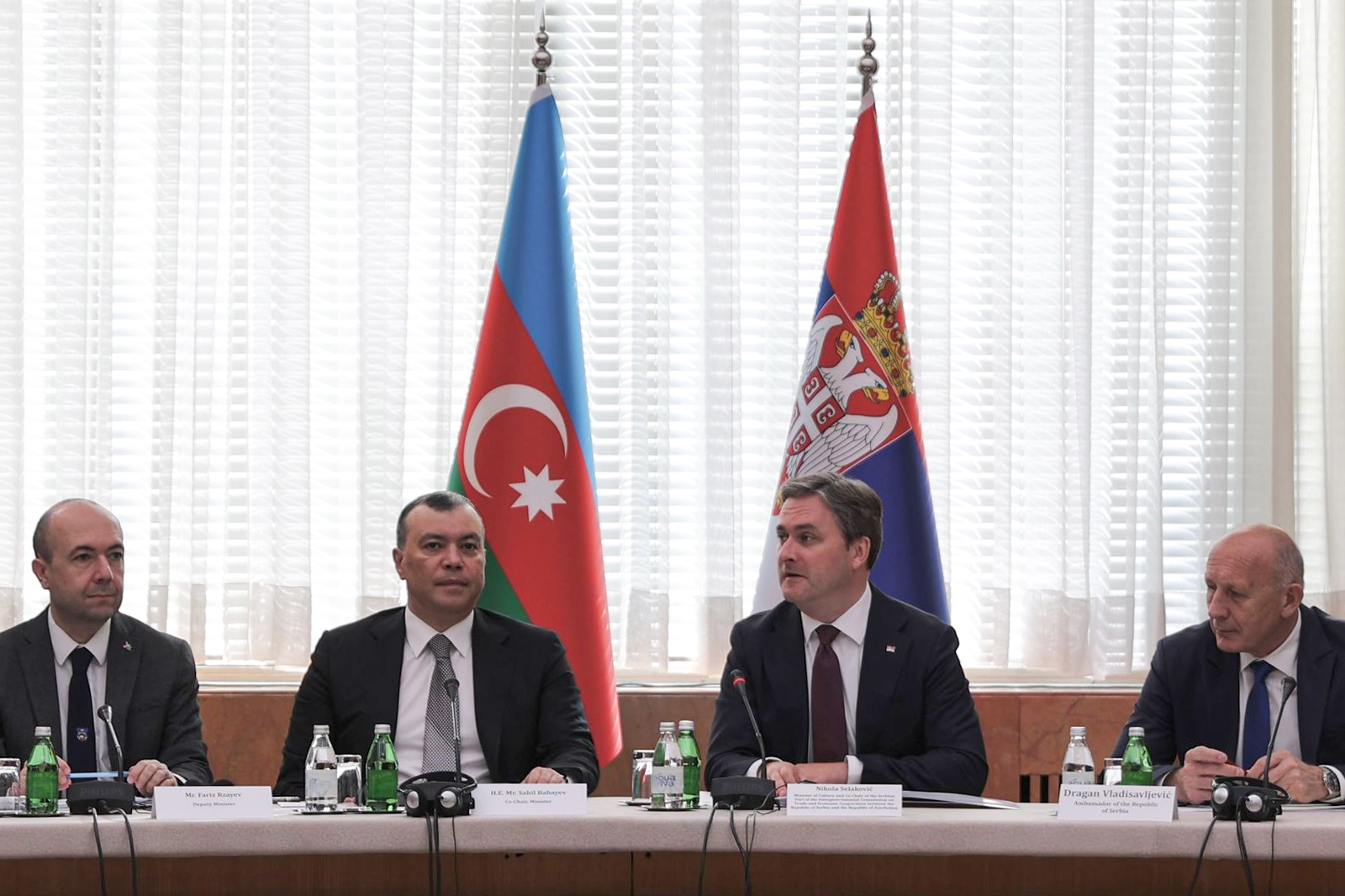 Komissiyanın həmsədrləri – Azərbaycan Respublikasının maliyyə naziri Sahil Babayev və Serbiya Respublikasının mədəniyyət naziri Nikola Selakoviç arasında iclasdan əvvəl keçirilən təkbətək görüşdə iki ölkə arasında iqtisadi, ticarət, enerji, nəqliyyat və informasiya texnologiyaları, gömrük, kənd təsərrüfatı, turizm, sosial müdafiə, səhiyyə, təhsil, mədəniyyət, gənclər və idman, eləcə də qida təhlükəsizliyi sahələrində əməkdaşlığın mövcud vəziyyəti və yeni imkanlar ətraflı müzakirə olunub, Komissiyanın IX iclasının gündəliyinə dair fikir mübadiləsi aparılıb.