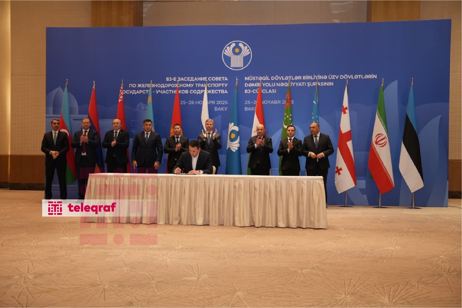 "Azərbaycan Dəmir Yolları" QSC-nin sədri Rövşən Rüstəmov, “Rusiya Dəmir Yolları” ASC-nin baş direktoru Oleq Belozyorov və "İran Dəmir Yolları"nın rəhbəri Cabbar Əli Zakeri arasında Şimal-Cənub Beynəlxalq Nəqliyyat Dəhlizinin inkişafı üzrə üçtərəfli anlaşma memorandumu imzalanıb.