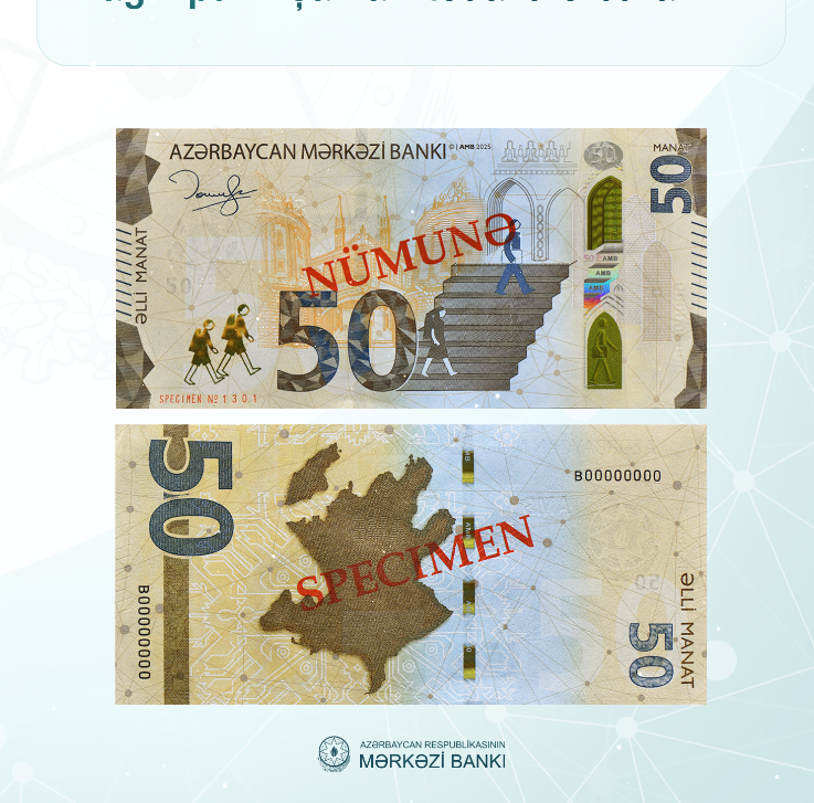 Qeyd edək ki, yenilənmiş 50 manatlıq kağız pul nişanı hazırda tədavüldə olan eyni nominallı pul nişanları ilə paralel olaraq dövriyyədə olacaqdır.