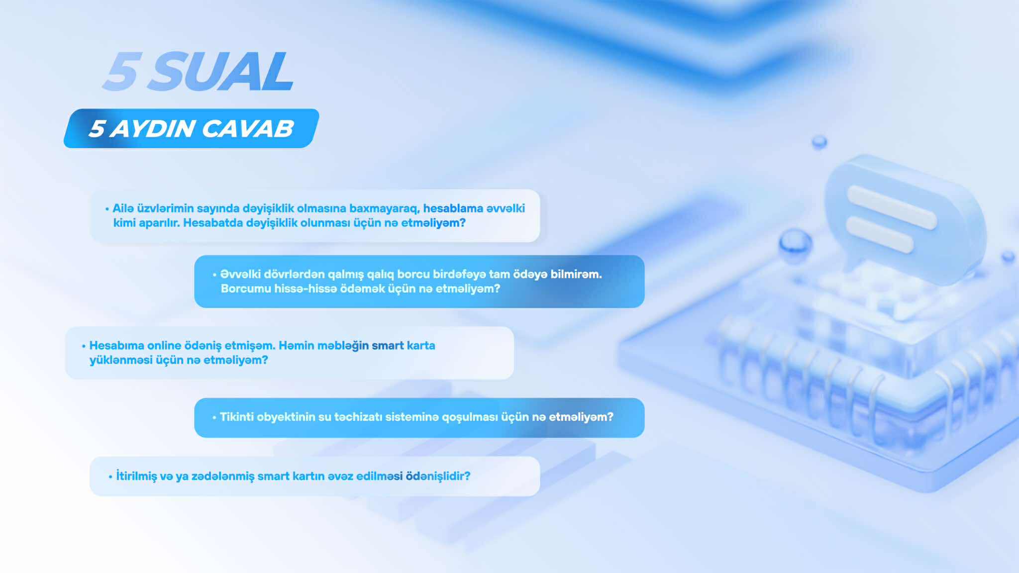 Teleqraf xəbər verir ki, bu kimi suallar içərisində vətəndaşların tez-tez müraciət etdikləri mövzuları əhatə edənləri də var. ADSEA-nın İri Şəhərlərin Birləşmiş Su Təchizatı Xidməti həmin sualları və onların cavablarını mərhələli şəkildə təqdim edir.