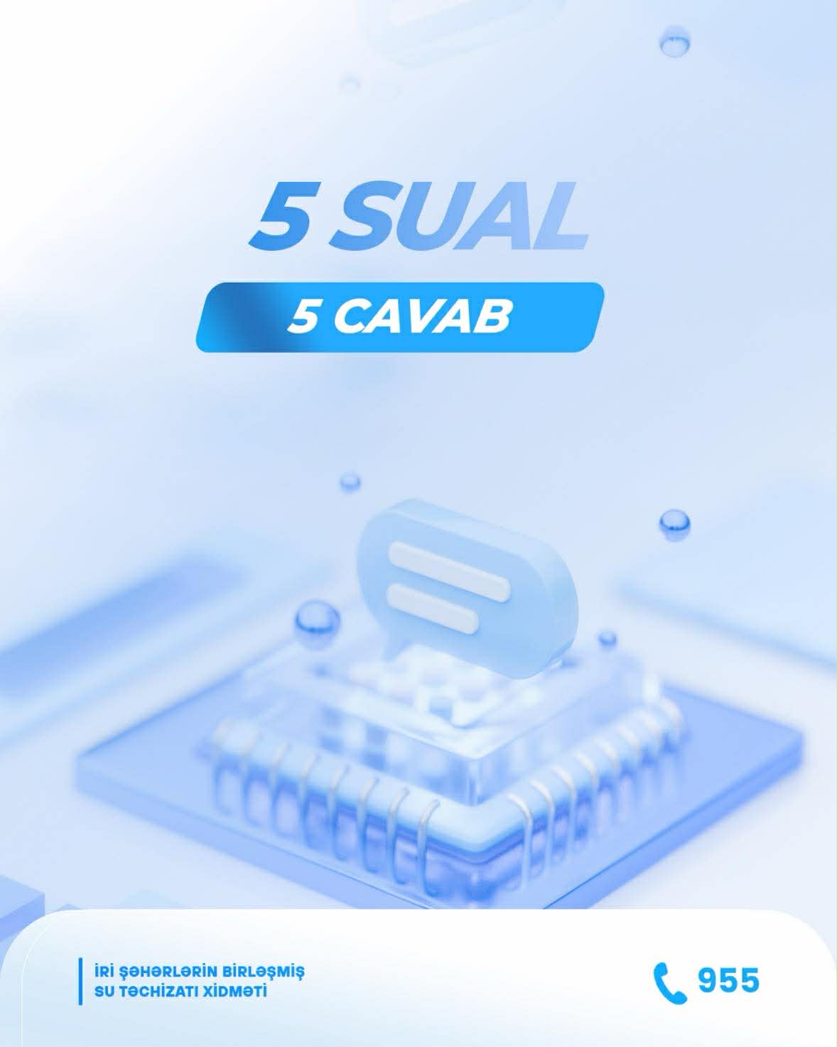 Teleqraf xəbər verir ki, bu kimi suallar içərisində vətəndaşların tez-tez müraciət etdikləri mövzuları əhatə edənləri də var. ADSEA-nın İri Şəhərlərin Birləşmiş Su Təchizatı Xidməti həmin sualları və onların cavablarını mərhələli şəkildə təqdim edir.
