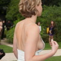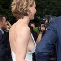 "Dior Haute Couture" kolleksiyasının nümayişinə tamaşa etmək istəyən Lourensi açıq-saçıq paltarı pərt edib.