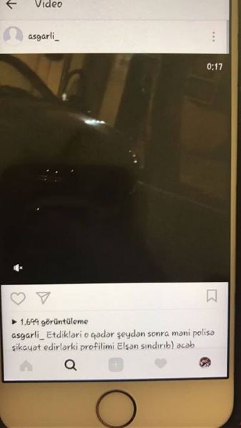«Bizi rahat yaşamağa qoymur. Mən onun uşağının anasıyam. Öz övladının anasına əxlaqsız şəkillər göndərmək heç kimə yaraşmaz. İstəyir ki, ailəmdə problem yaransın. Mənim boşanmağımı istəyir. Sosial şəbəkələrdə adıma əxlaqsız səhifələr açır. Mənim və özünün toy şəkillərinin üzərin əxlaqsız sözlər yazıb internetə qoyur. Əxlaqız təkliflər edir. Mən xakerlərə pul verirdim ki, onlar adıma açılan saxta səhifələri bağlasınlar. Sən demə, səhifəni elə həmin adamlar açırmış. Onlar da Elşənin adamlarıdır. Mən özüm blogerəm. Böyük səhifələrm var. Səhifəmi də Elşənin adamları oğurlayıb. Hazırda hər iki iş polisdədir».