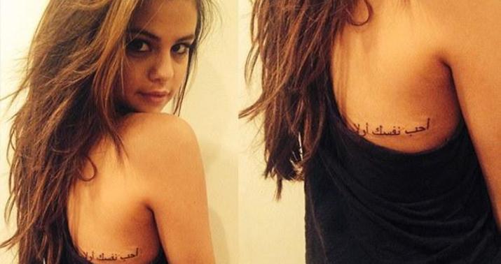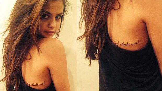 Kürəyinə ərəbcə döymə etdirən 21 yaşlı gözəlçə döyməsinin "Hər şeydən əvvəl özünü sev" mənasını verdiyini bildirib.