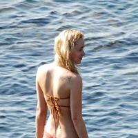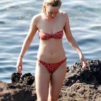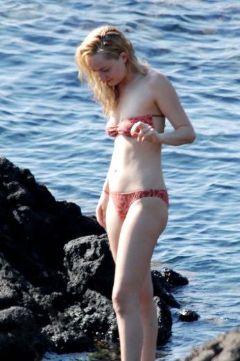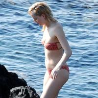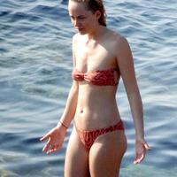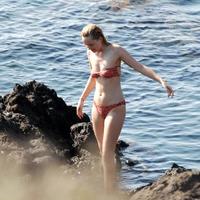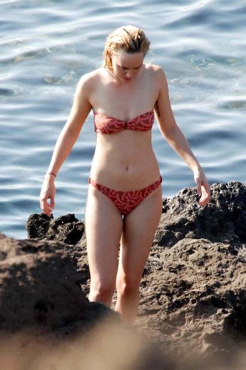 Qırmızı naxışlı bikini geyən Conson diqqətləri üzərinə toplamağı bacarıb.