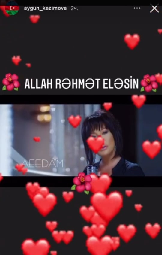 Teleqraf.com xəbər verir ki, Aygün Kazımova İnstaqramda hekayə bölümümdə illərdir küsülü olduğu həmkarı Brilliant Dadaşovanın ifa etdiyi "Həyatda hər şey gözəldir" mahnısını paylaşaraq "Allah rəhmət etsin!" şərhini yazıb.