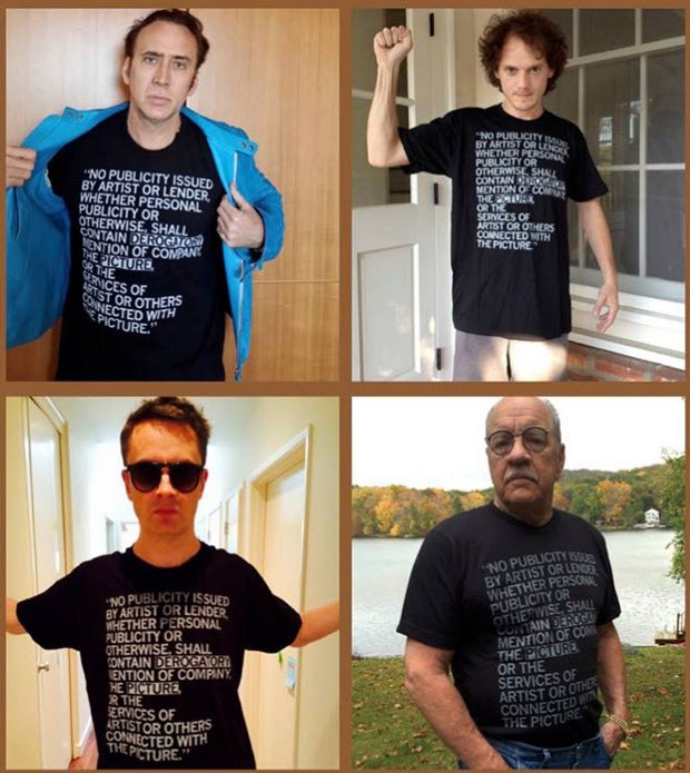 Müqaviləyə əsasən aktyor film haqqında mənfi açıqlamalar verə bilməz. Bu aktyor və dostları geyindikləri qara koftanın üzərinə etirazlarını yazaraq sosial mediada paylaşıb.