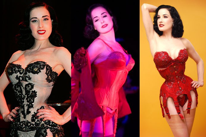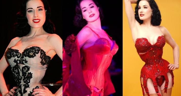 Dita fon Tiz - Dita fon Tiz dünyada ən çox burlesk səhnə ifasına görə tanınır, pressada onu tez-tez “Burlesk kraliçası” da adlandırırlar. Dita burlesk üslubunu 1992-ci ildən rəqqasələr qrupu ilə başlamışdı, bu da burlesk janrının dirçəlişinə səbəb olmuşdu. 2012-ci ildə Dita fon Tizin 40 yaşı olub. Ditanın 162 sm boyu, 50 kilo çəkisi, 55 sm-lik beli var. Dita fon Tiz-in korsetlərini Cənab Perl tikirdi. Aktirsanın sözlərinə görə, Cənab Perlin tikdiyi korsetlər onun üçün ən bahalı brillinatlardan da dəyərlidir. Belini incəltməyə heç vaxt can atmayıb. Amma ekstremal, incə formalar onun xoşuna gəlir. Aktrisa əməlli- başlı korset kolleksioneridir. Onun kolleksiyasında 400 korset var. “Kolleksiyamda 19-cu əsrdə aid olan o dövrün ən gözəl ipəklərindən tikilib. Təəsüüf ki, dizaynerlər daha belə gözəl şeylər tikmirlər. Korsetlərlə hər şey əla görünür”.