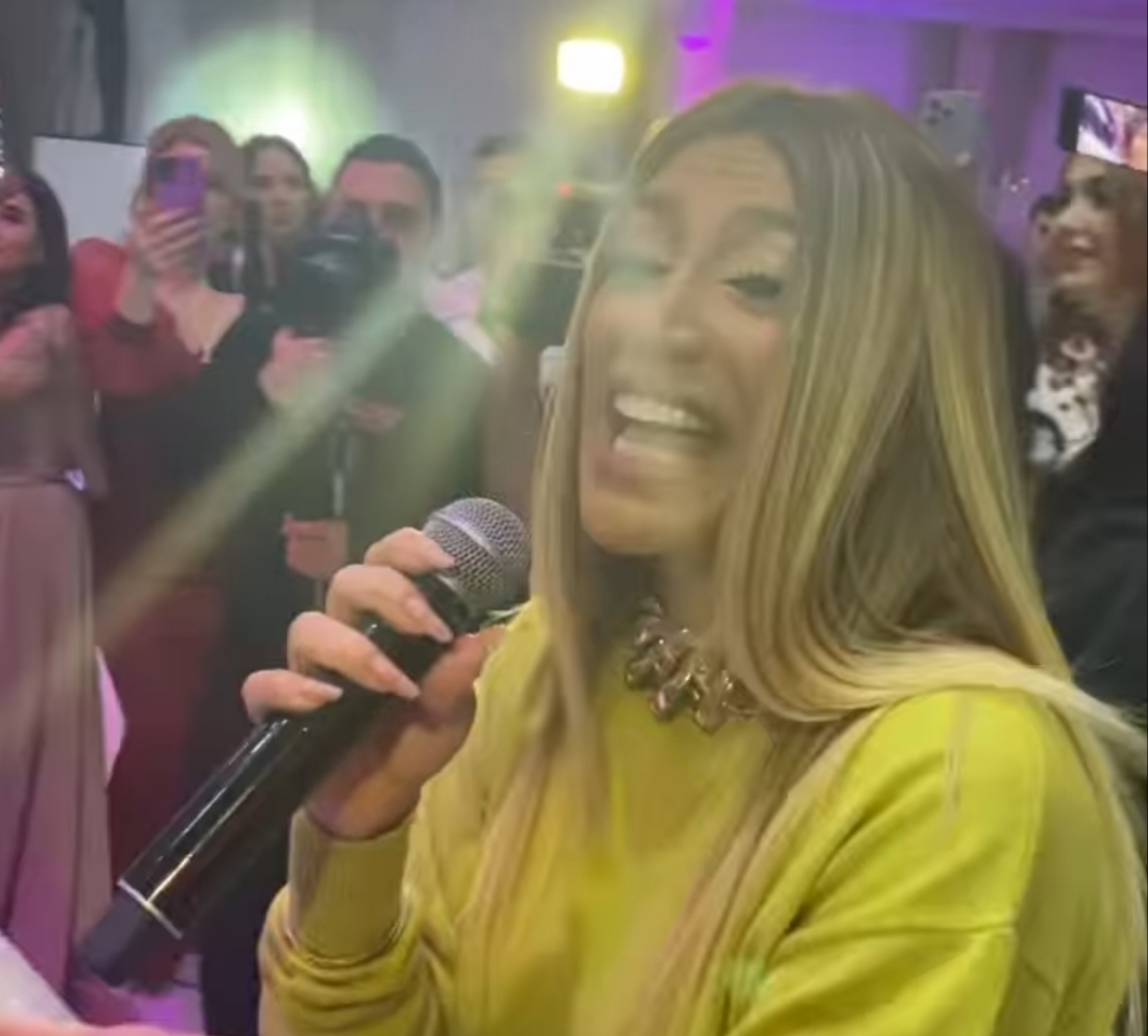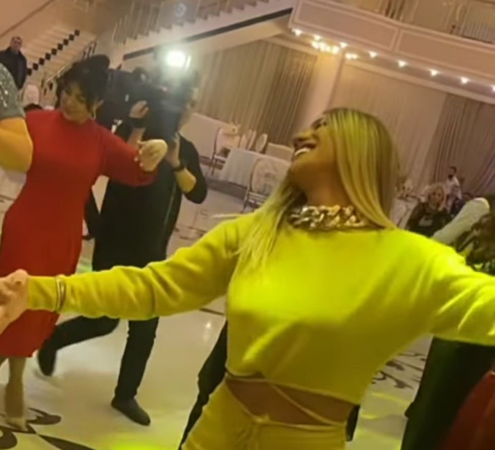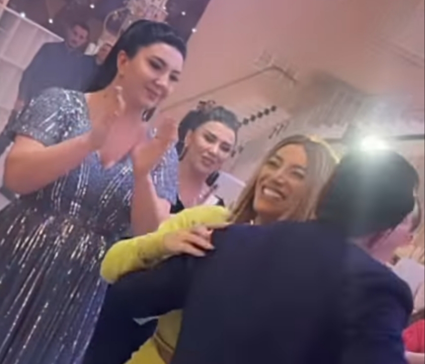 Röya Ayxan mahnı ifa edərək gəlinlə bəyi rəqsə dəvət edib.