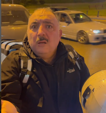 Motosiklet idarə edən Bəhram Bağırzadə ona qışqıran "Korsan, bir bax da, az qala maşını vurmuşdun" deyən şəxsə "Nə olub, nə qışqırırsan? İşləməyə qoymursunuz" - deyə cavab verib.