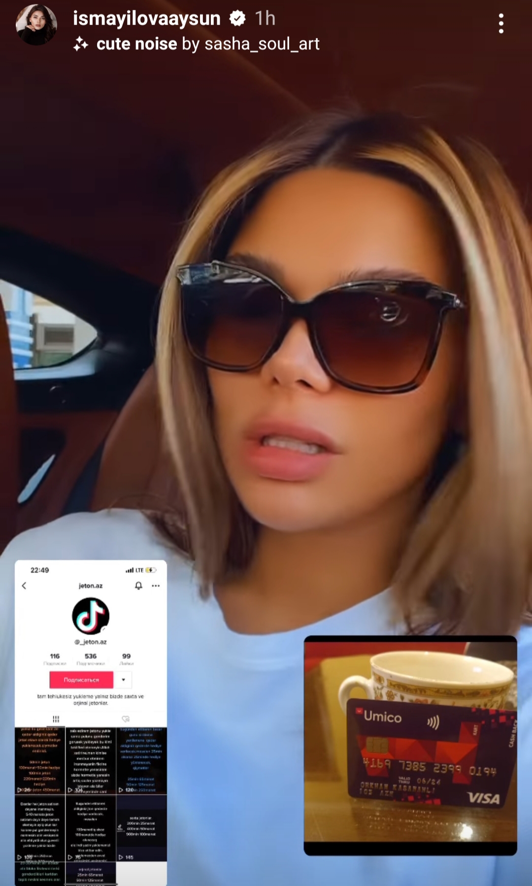 "Bir dələduz "TikTok" platformasında jeton satmaq adıyla camaatdan pul alır və sonra ortadan itir. Dünən canlı yayımda olanda Eşqin jeton almaq istəyirdi. Jeton.az səhifəsi dayanmadan yazırdı. Eşqin onların səhifəsinə 120 manat pul atdı. Nə jeton, nə də onlar var. Haramın olsun".