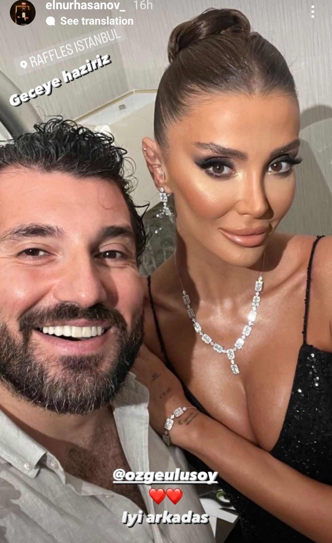 Teleqraf.com xəbər verir ki, Elnur Həsənov İnstaqram səhifəsində Özgə Ulusoyla fotosunu paylaşaraq "Yaxşı dost", - deyə qeyd edib.