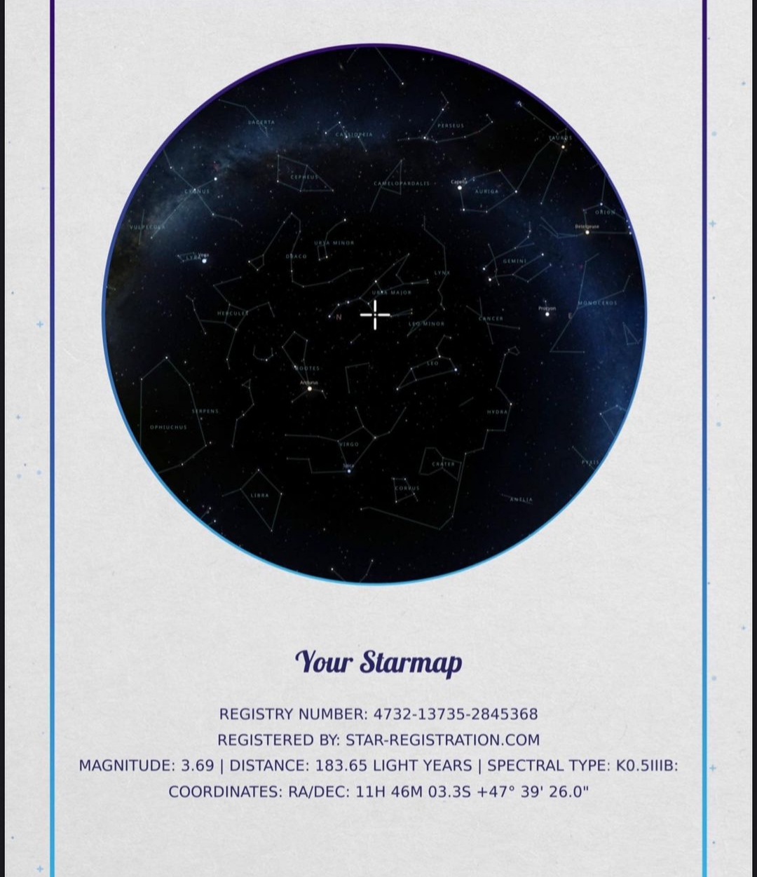 - Afaq xanım, sizə göydə Afaq adlı ulduz hədiyyə edilib. Oxucularımızın nəzərinə çatdıraq ki, bunu "star registration" saytı vasitəsiylə etmək mümkündür. Qeydiyatın qiyməti 45, 70 və 90 dollar arasında dəyişir. Təəssüratlarınızı eşitmək istərdik.