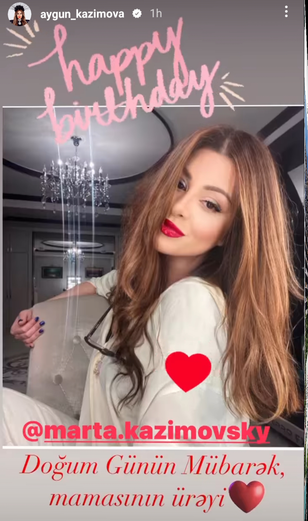 Teleqraf.com xəbər verir ki, Aygün Kazımova İnstaqramda hekayə bölümündə İlqarə Kazımova ilə fotosunu paylaşaraq ürək sözlərini yazıb.