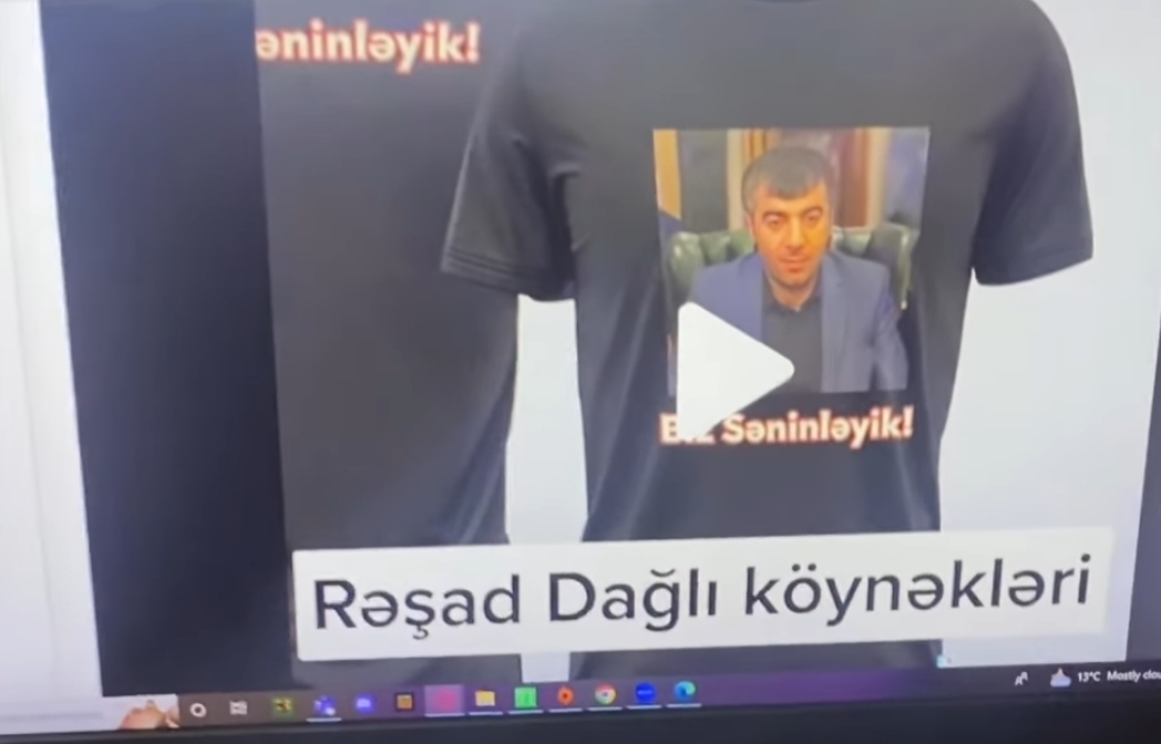 Meyxanaçı Rəşad Dağlının oğlu Yusif Əmirov üzərində atasının fotosu həkk edilən köynəklərin satışına etiraz edib.