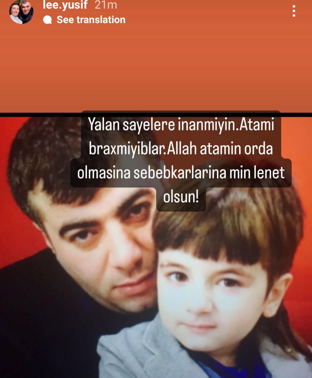 "Yalan şayiələrə inanmayın, atamı buraxmayıblar. Allah atamın orada olması səbəbkarlarına min lənət eləsin".