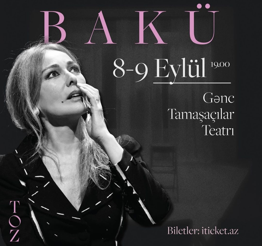 Aktrisa sentyabrın 8-9-da Azərbaycan Dövlət Gənc Tamaşaçılar Teatrında "Toz" tamaşasını təqdim edəcək.