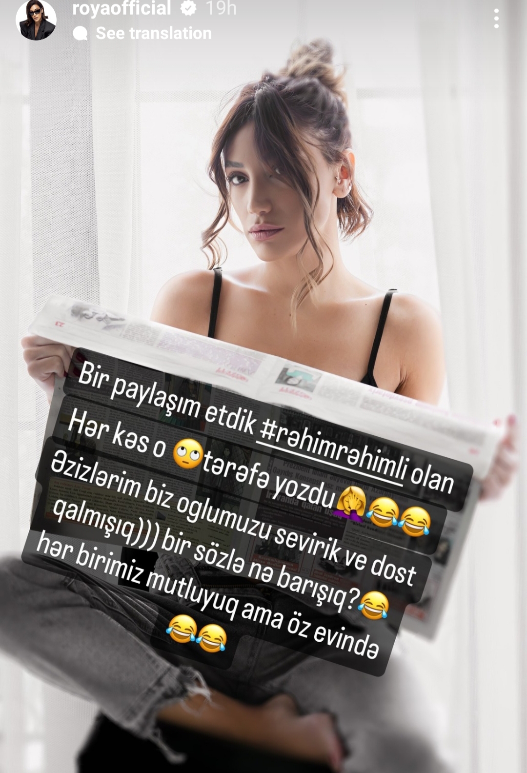 Teleqraf.com xəbər verir ki, Röya Ayxan İnstaqramda hekayə bölümündə belə yazıb: "Rəhim Rəhimlinin pianoda ifa etdiyi video paylaşdım. Hər kəs yozdu. Əzizlərim, biz oğlumuzu sevirik və dost qalmışıq. Bir sözlə, nə barışıq? Hər birimiz xoşbəxtik, amma hərə öz evində..."